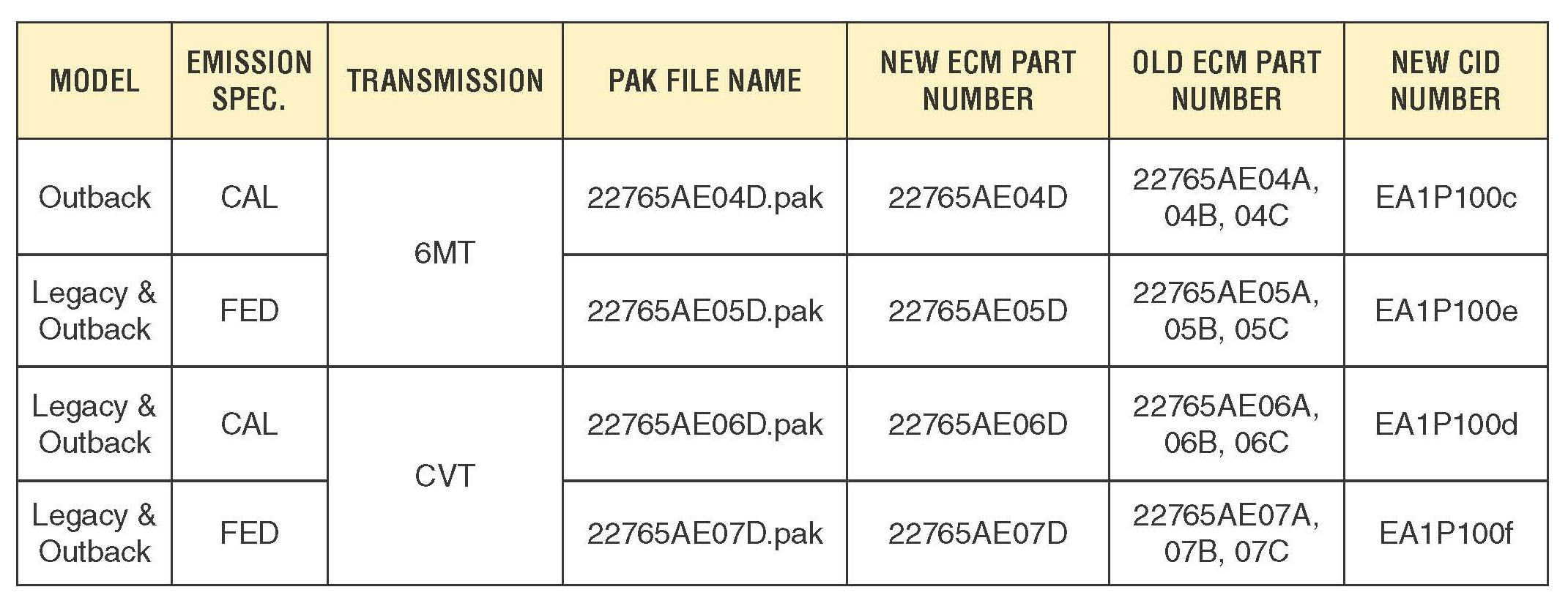 ^ In the event of an ECM replacement, always confirm the new ECM has the most recent software and CID number installed before releasing the vehicle.