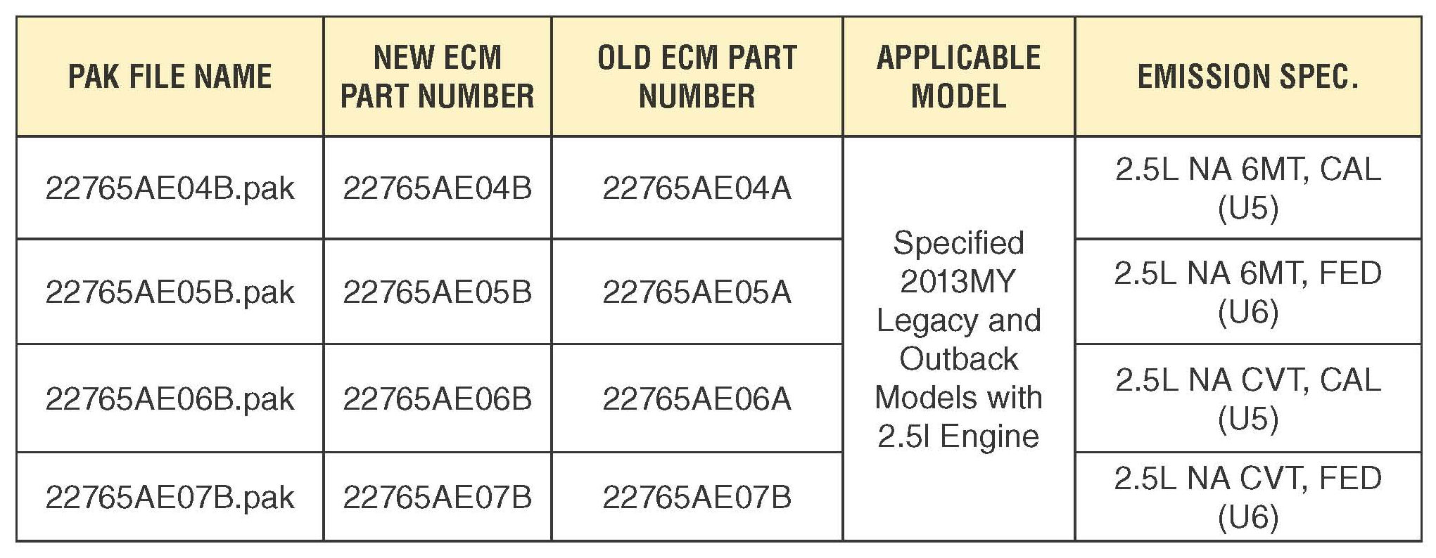 2013 Legacy and Outback w/ 2.5L Engine