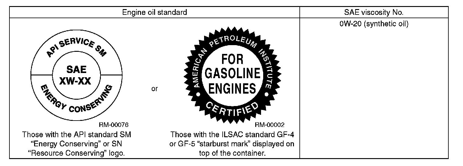 ^ Use 0W-20 (synthetic oil).