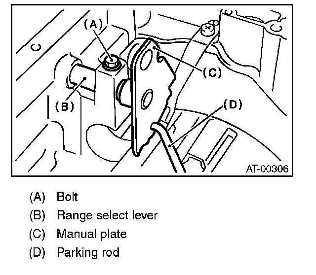 8) Remove the bolts securing range select lever, and then remove the select lever, manual plate and parking rod.