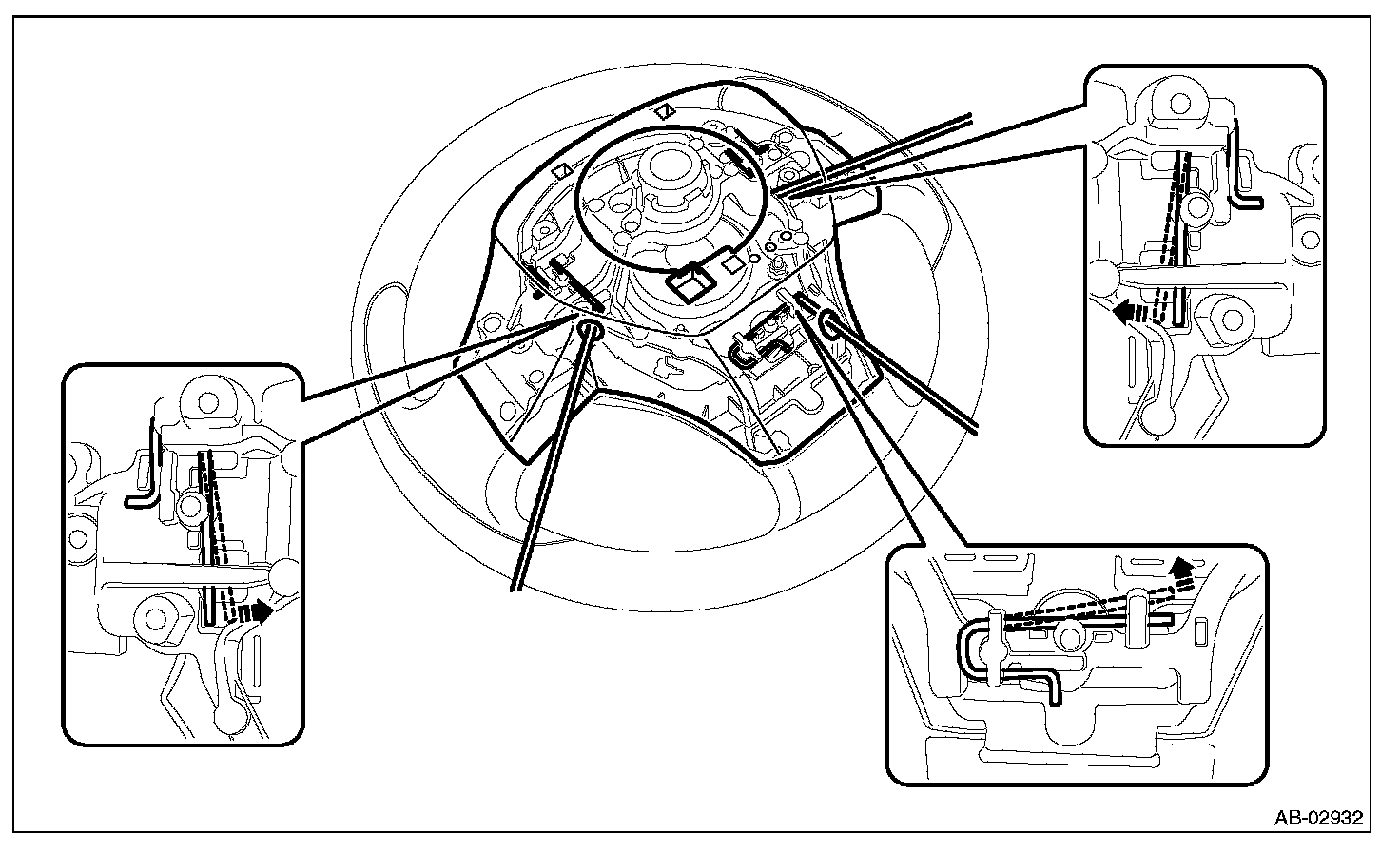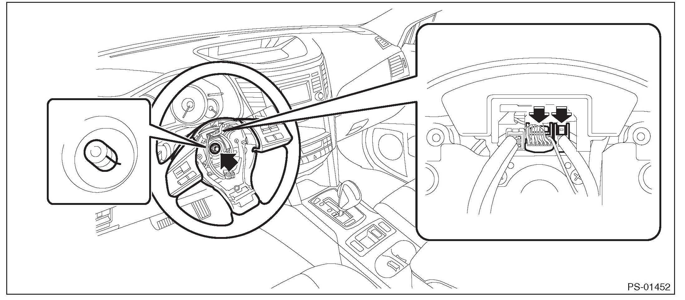 ^ Always use the steering wheel puller for removal to avoid deforming the steering wheel.