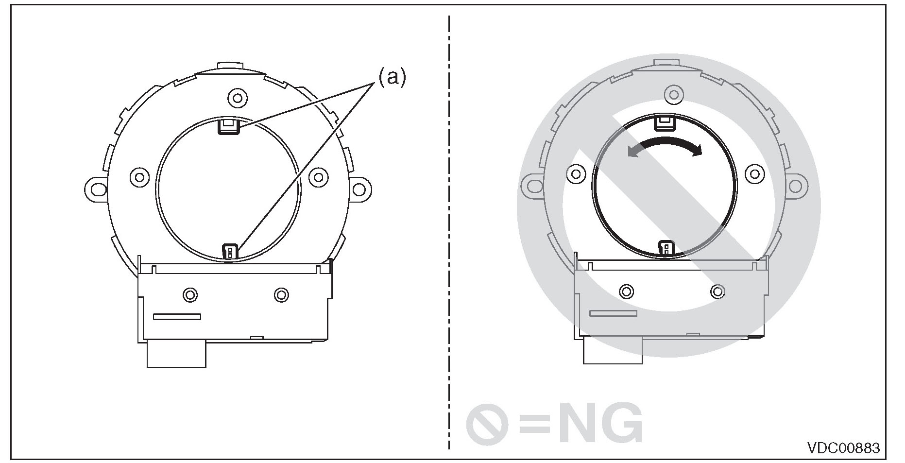 (3) Align the position of the protrusion and install roll connector to steering angle sensor.