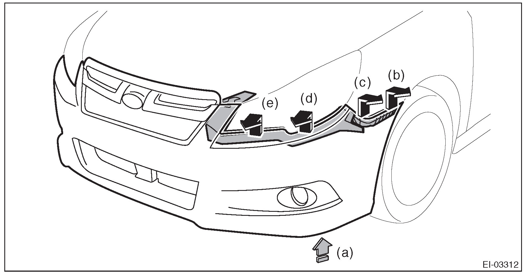 - Pushing up the lower side (a) of the fog light, remove from (b) to (e).