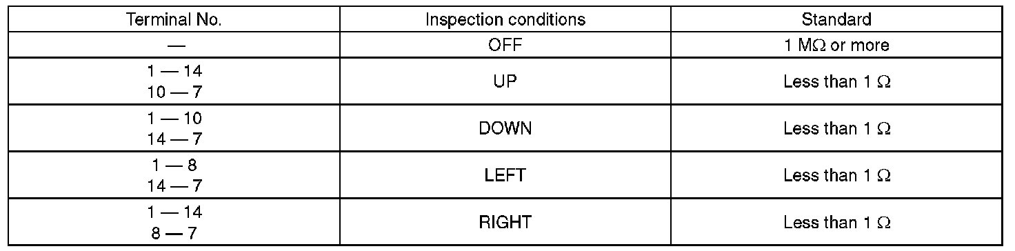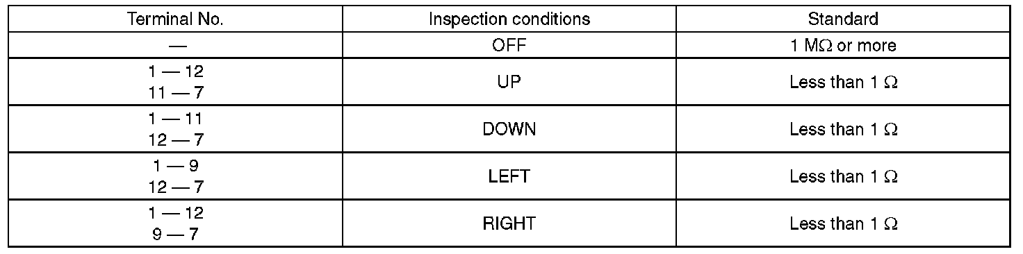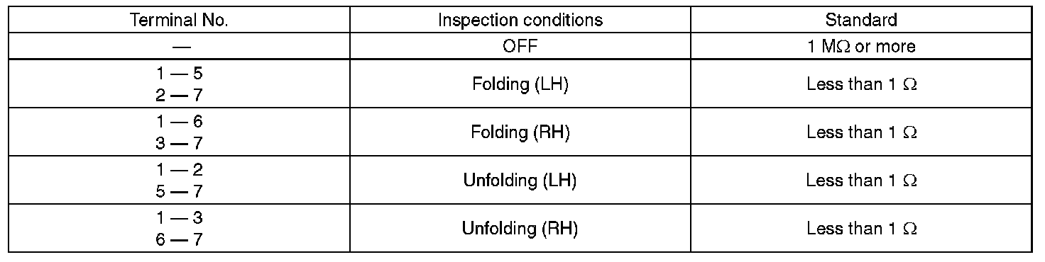 3. Replace the remote control mirror switch if the inspection result is not within the standard value.