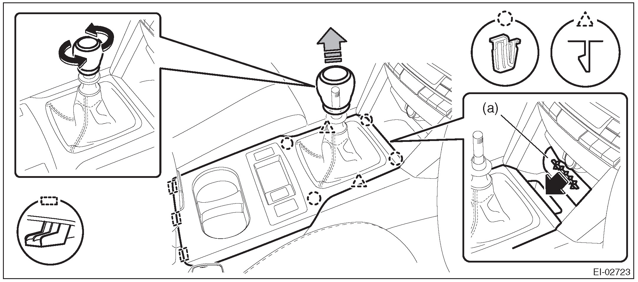 NOTE: Turn over the front center pocket mat (a) and pull up the console front cover from the slit.