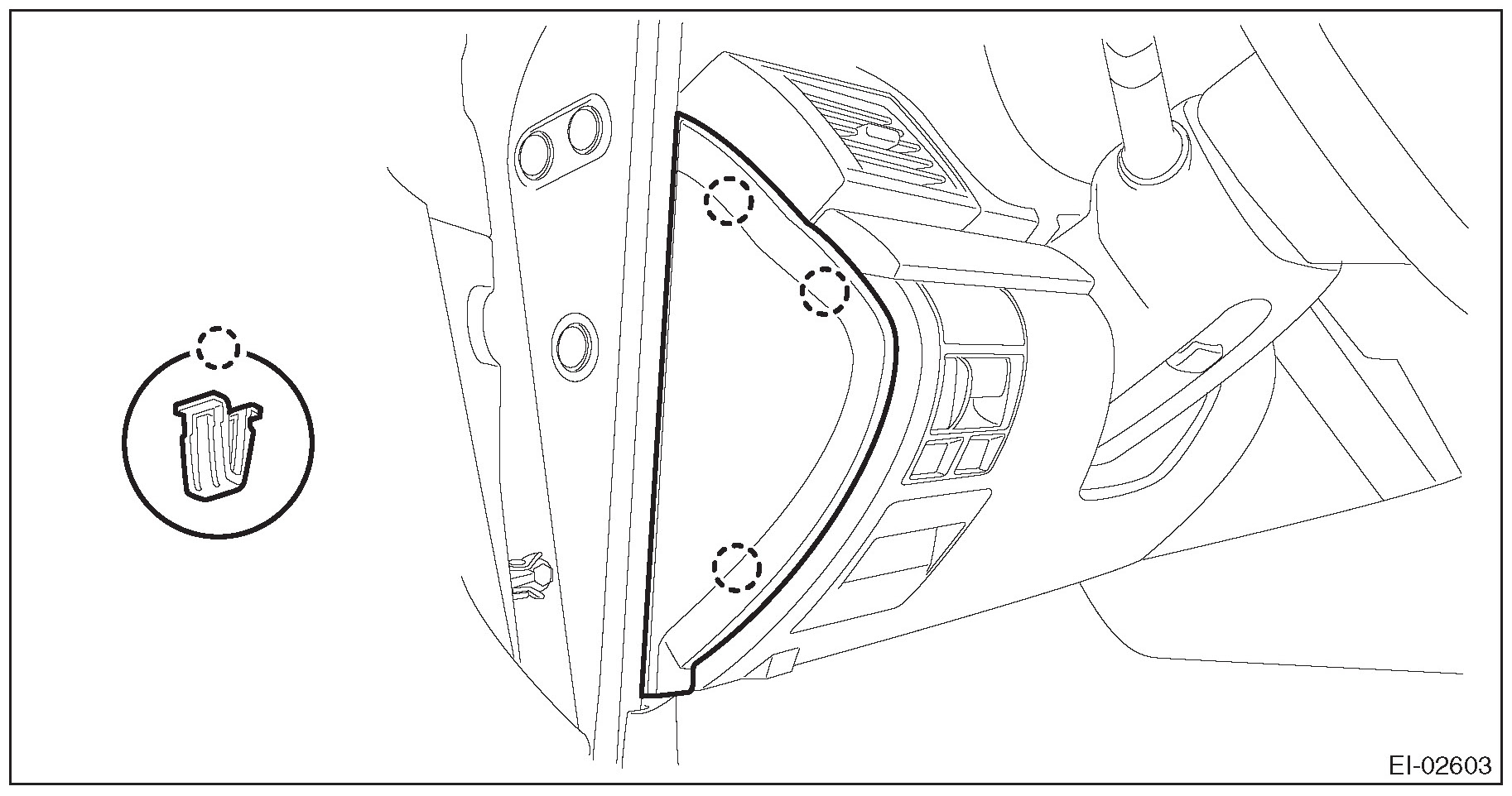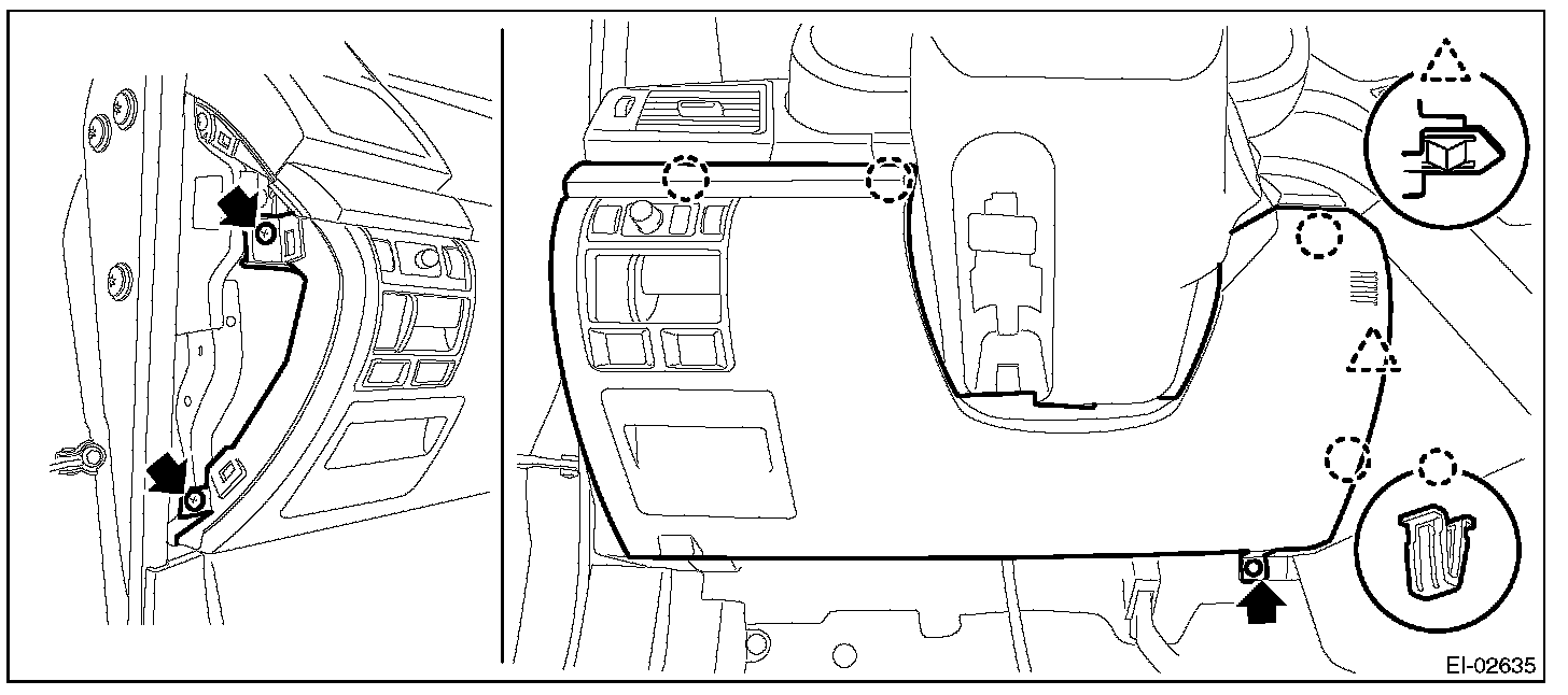 1. Remove the clips, and remove the instrument panel side cover LH.