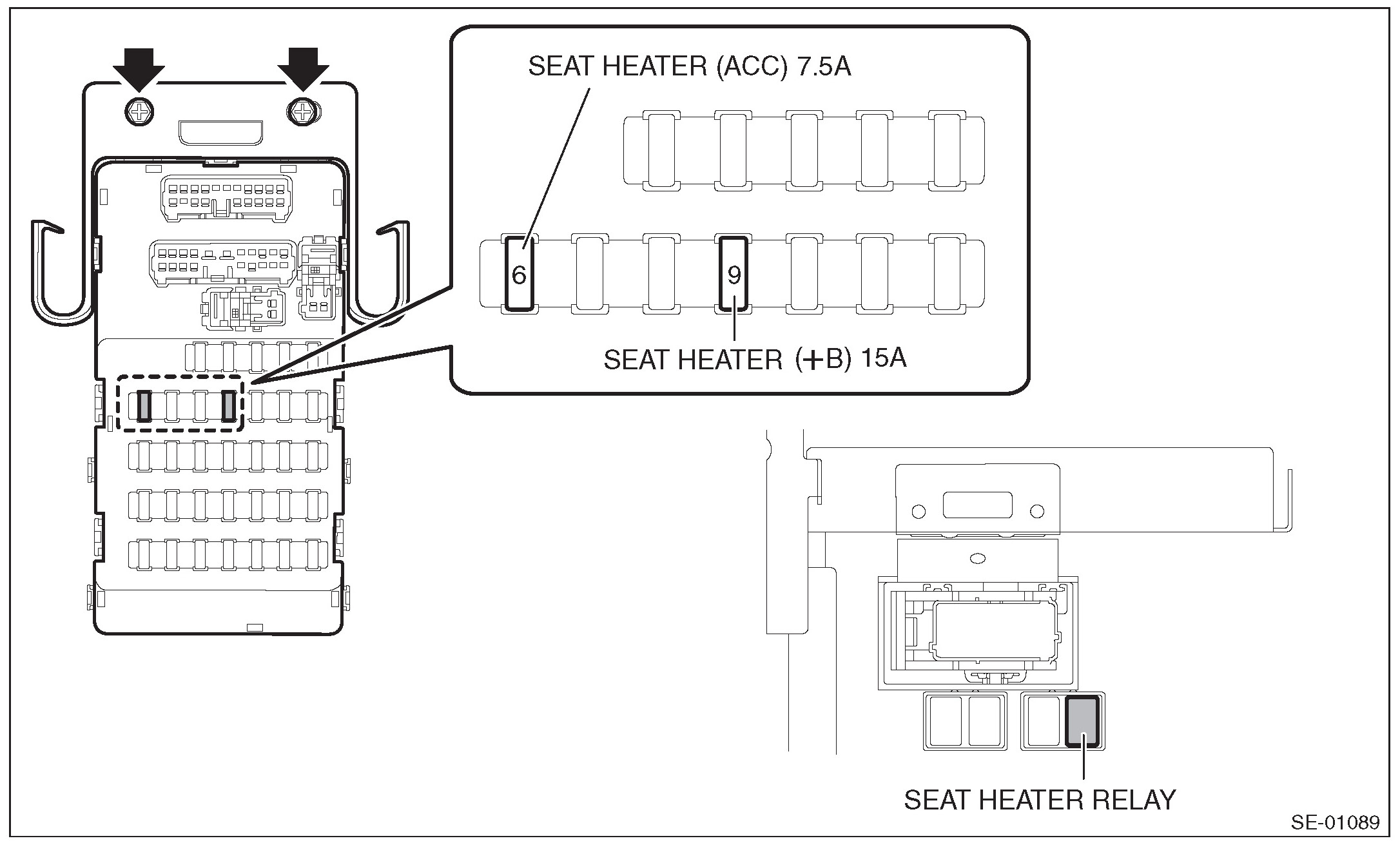 3. SEAT HEATER RELAY AND FUSE