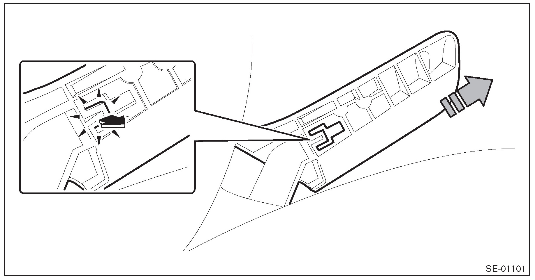 3. Remove the clip and release the claw in the front section of the seat side cover.