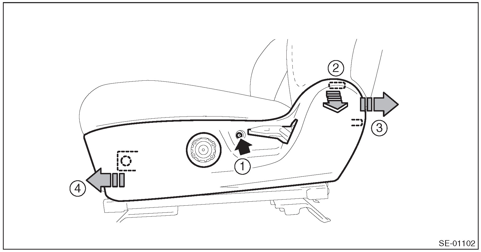 NOTE: For power seat, lift the seating face before removing the seat.