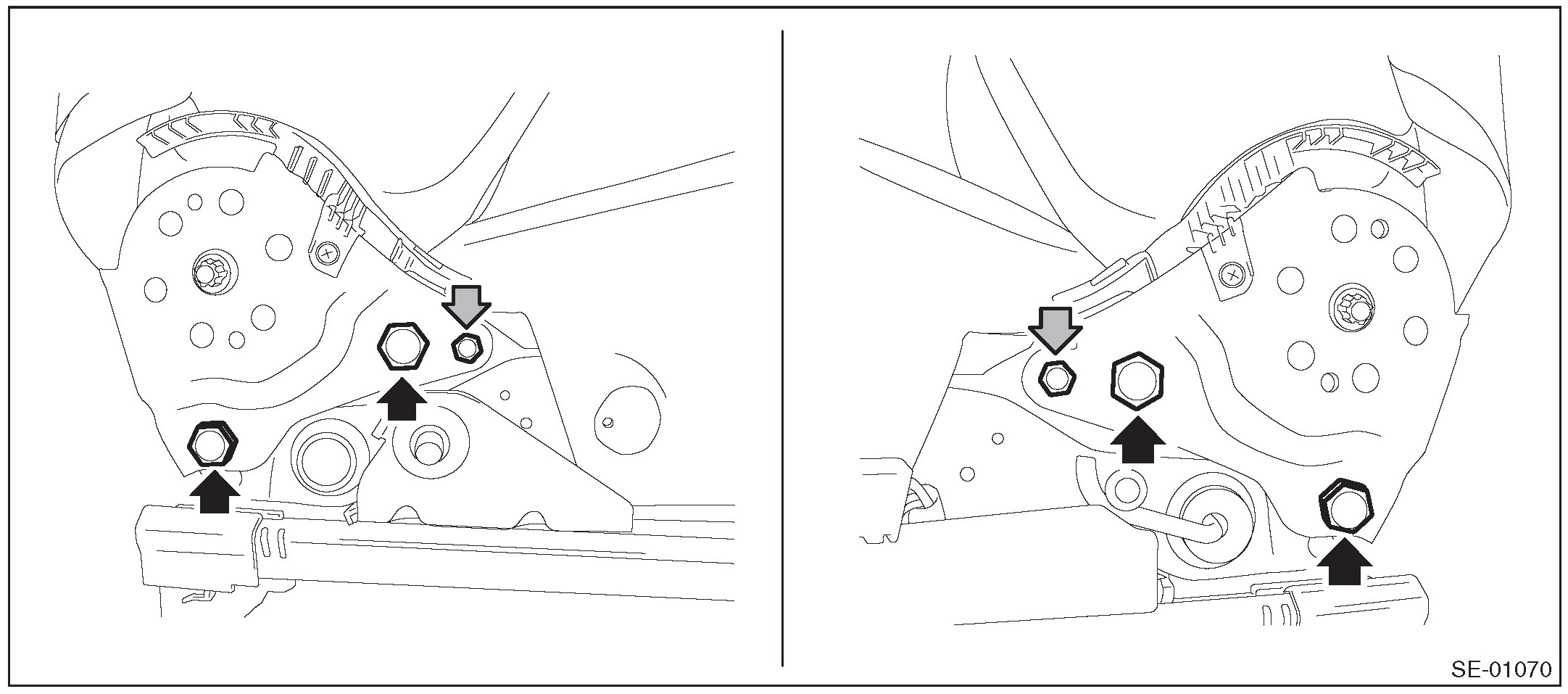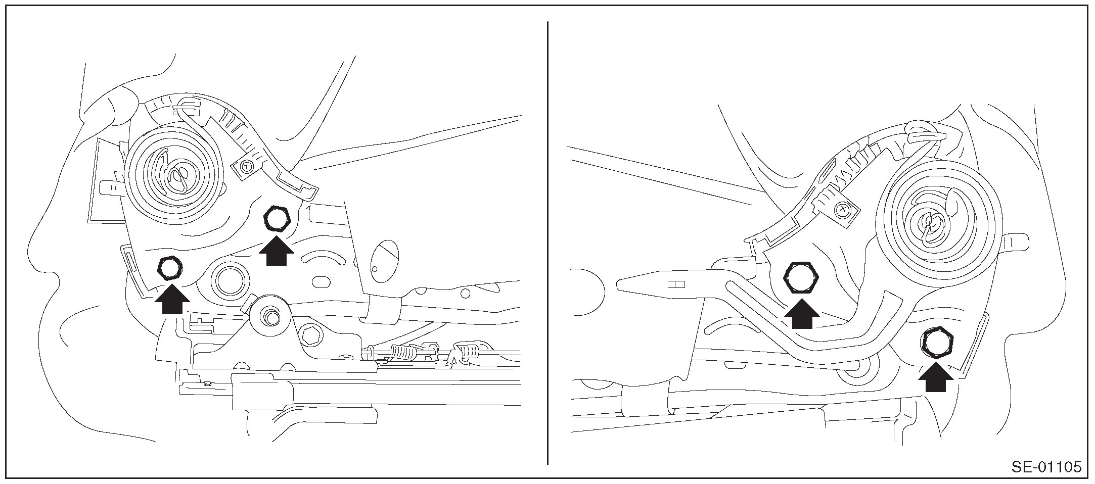 - The seat mounting bolts differ between the front mounting points and the rear mounting points. Make sure that you are using correct bolts at correct positions.