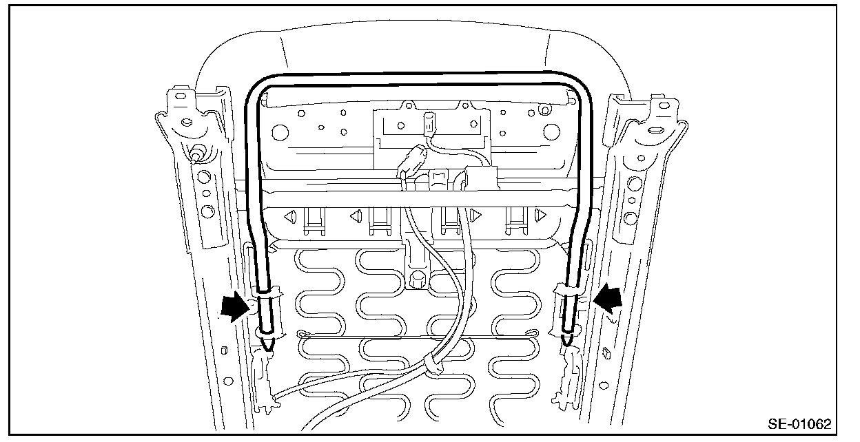 CAUTION: Before assembling, make sure how the harnesses of the side airbag and inner seat belt are routed in order to avoid misarranging. Assembling with harnesses improperly routed may cause the harness to get caught and short out.