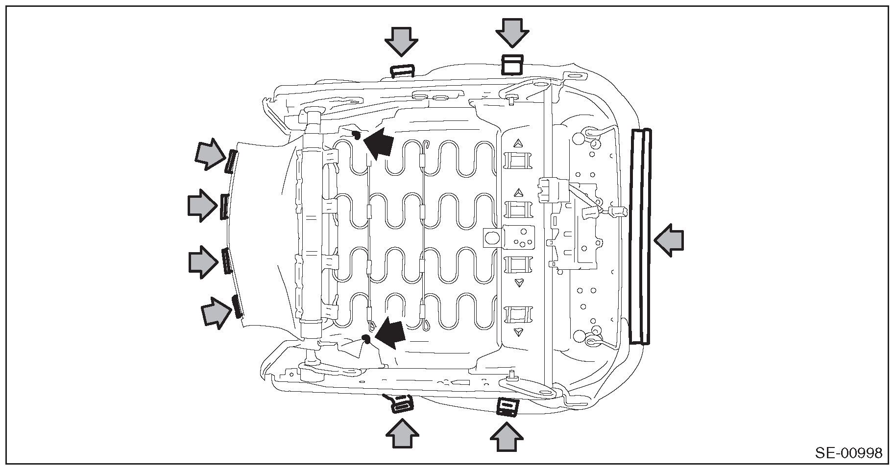 - If the seat cushion cover is removed, make sure to replace the hang wire on the seat cushion side with a new wire.