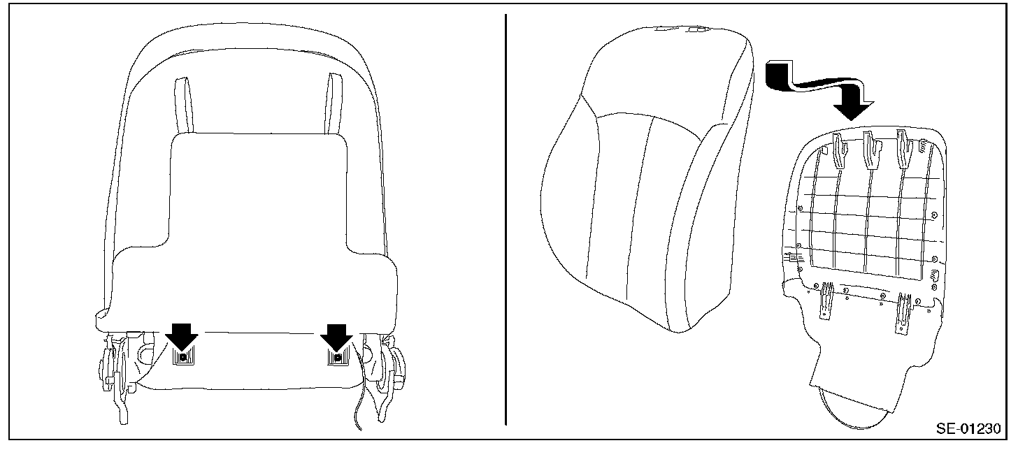 NOTE: For model with side airbag, if the door side of the backrest cover is torn or frayed, the side airbag may not be deployed properly. In this case, replace the backrest cover.