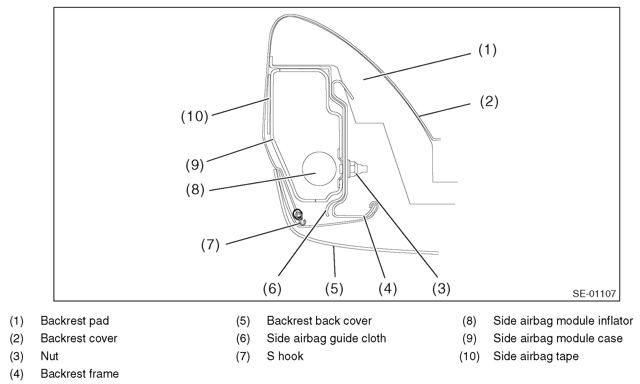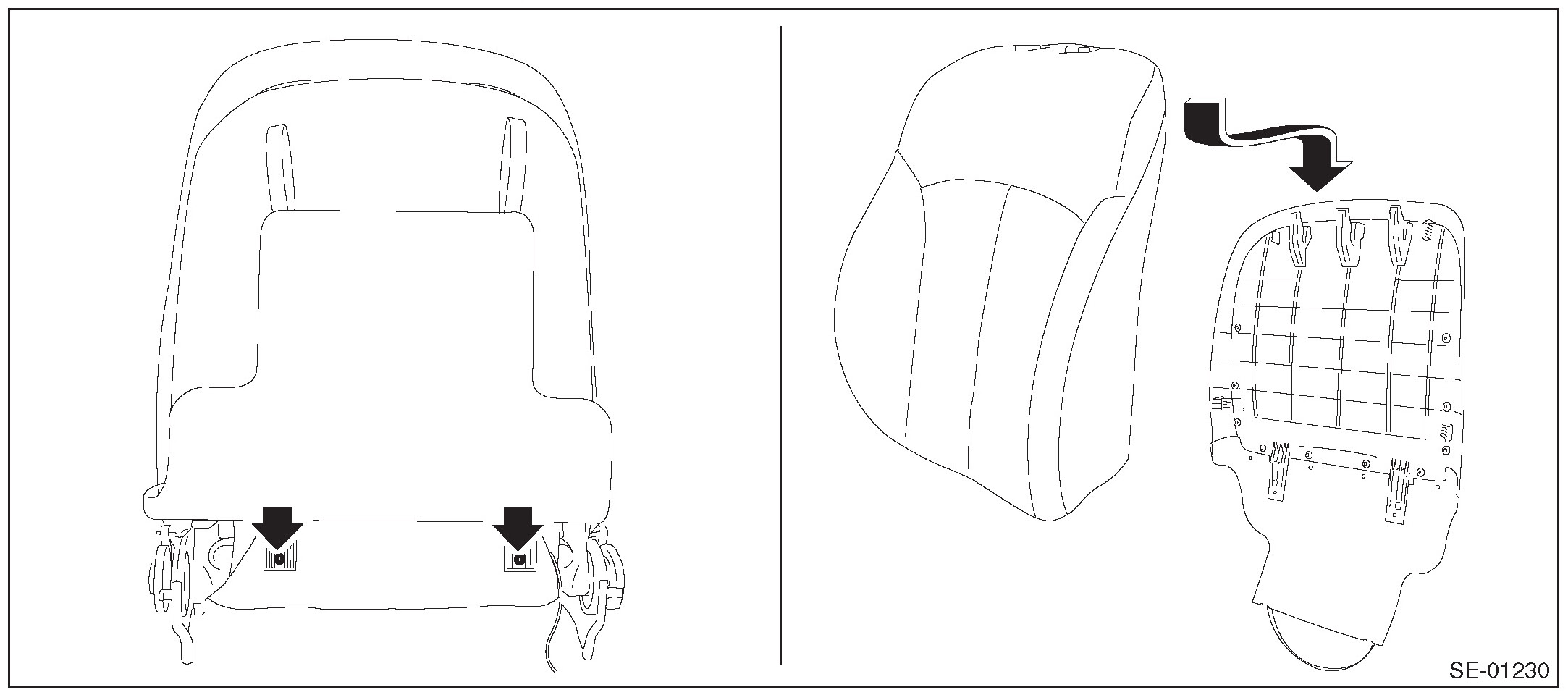 Besides, if the backrest cover is not installed securely, the side airbag module may not be activated properly, therefore keep strictly to the following procedures.