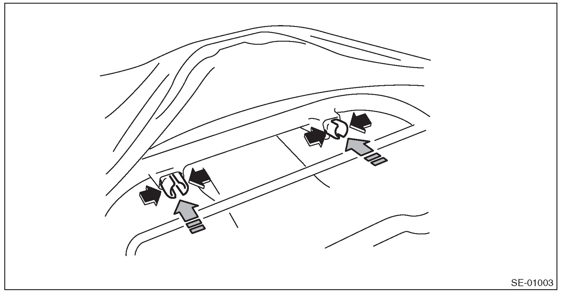 1. Remove the clips and remove the riser covers LH and RH.