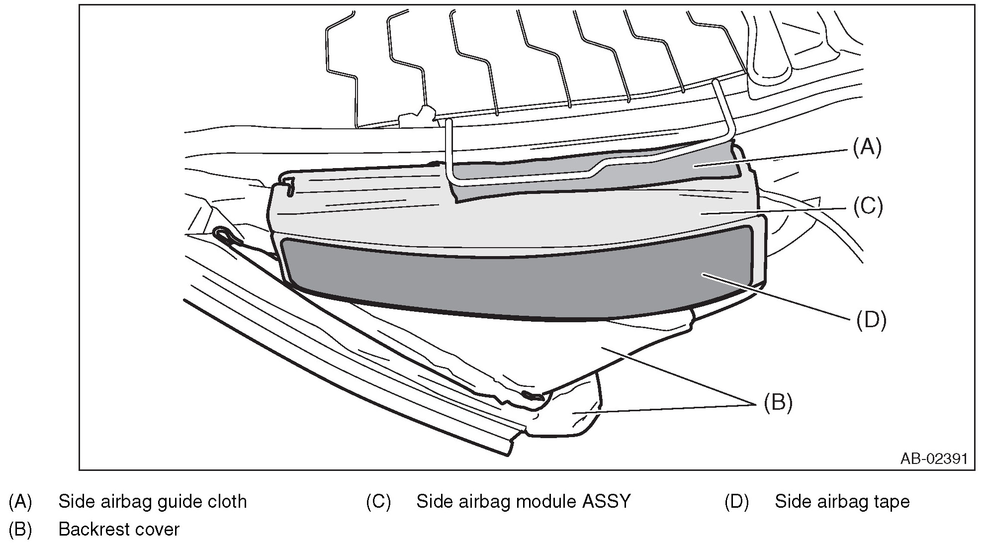 - When replacing the side airbag assembly with new one, be sure to attach the side airbag tape.