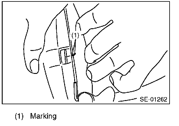 1. Adjust so that the left and right clearances between wire and seat pad become equal, and mark the seat pad.