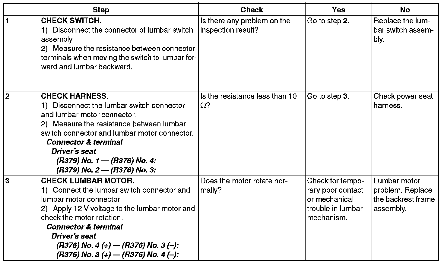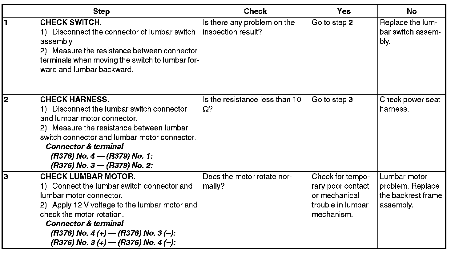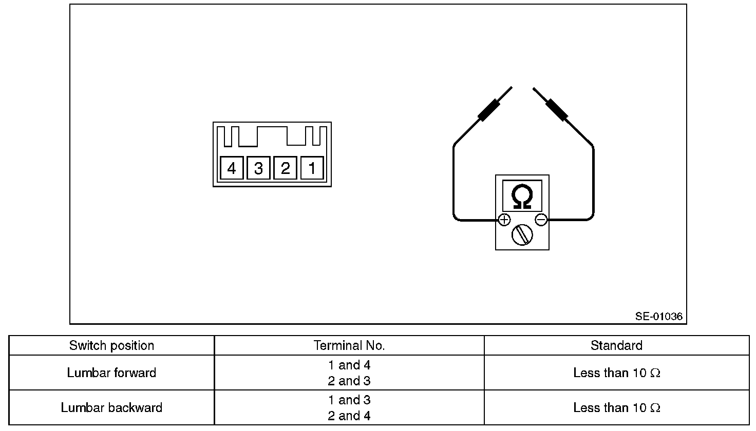 Replace the lumbar switch if the inspection result is not within the standard value.