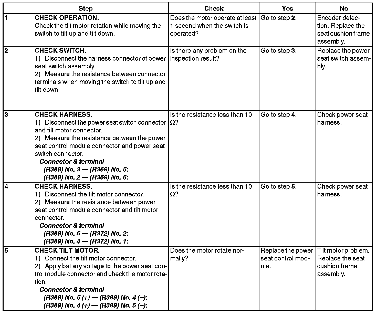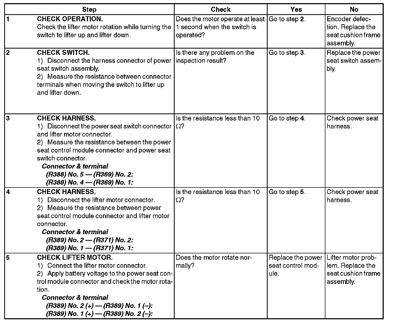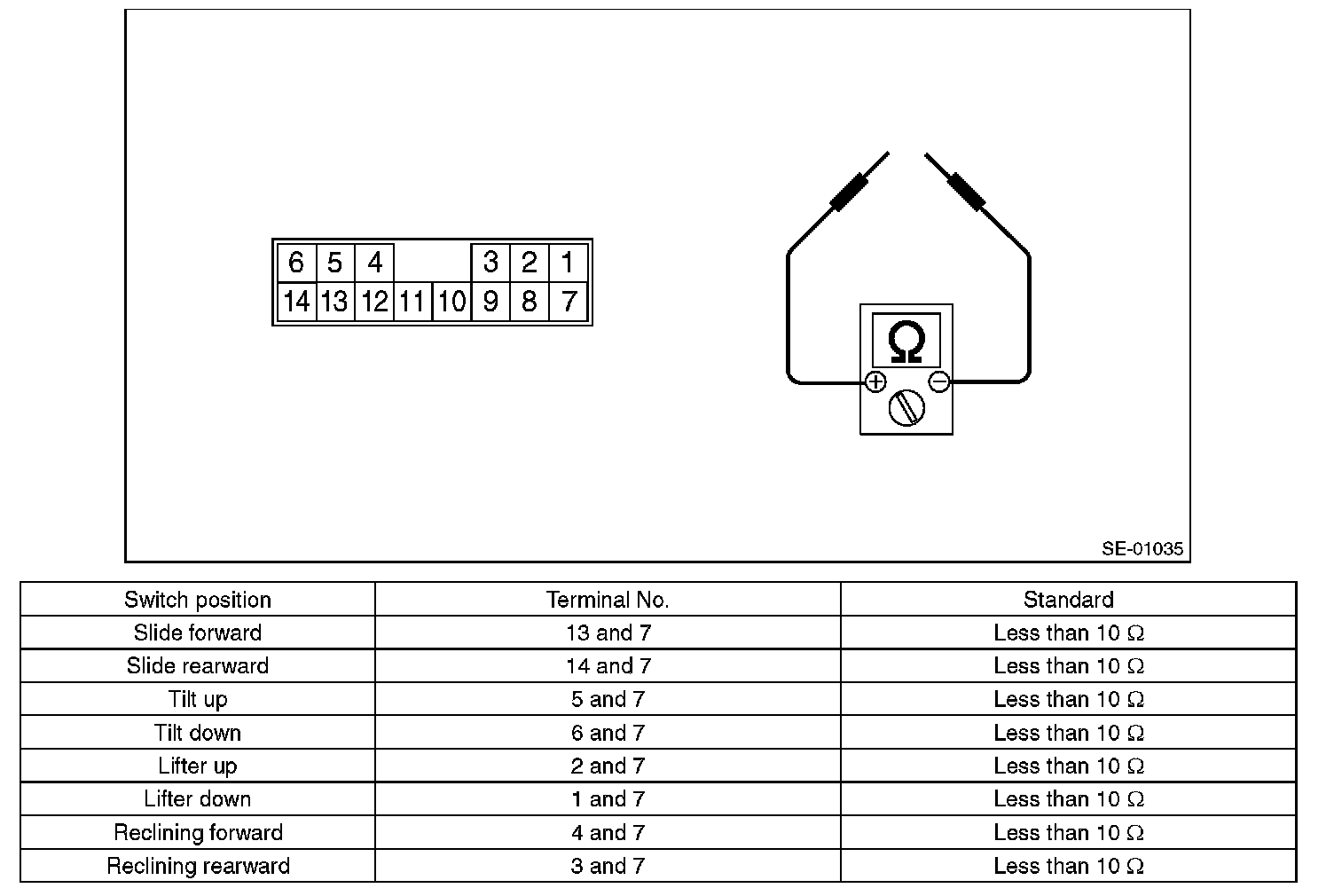 Replace the lumbar switch if the inspection result is not within the standard value.