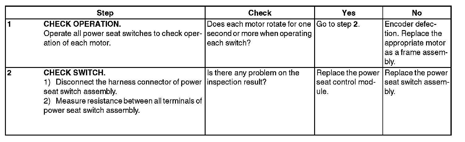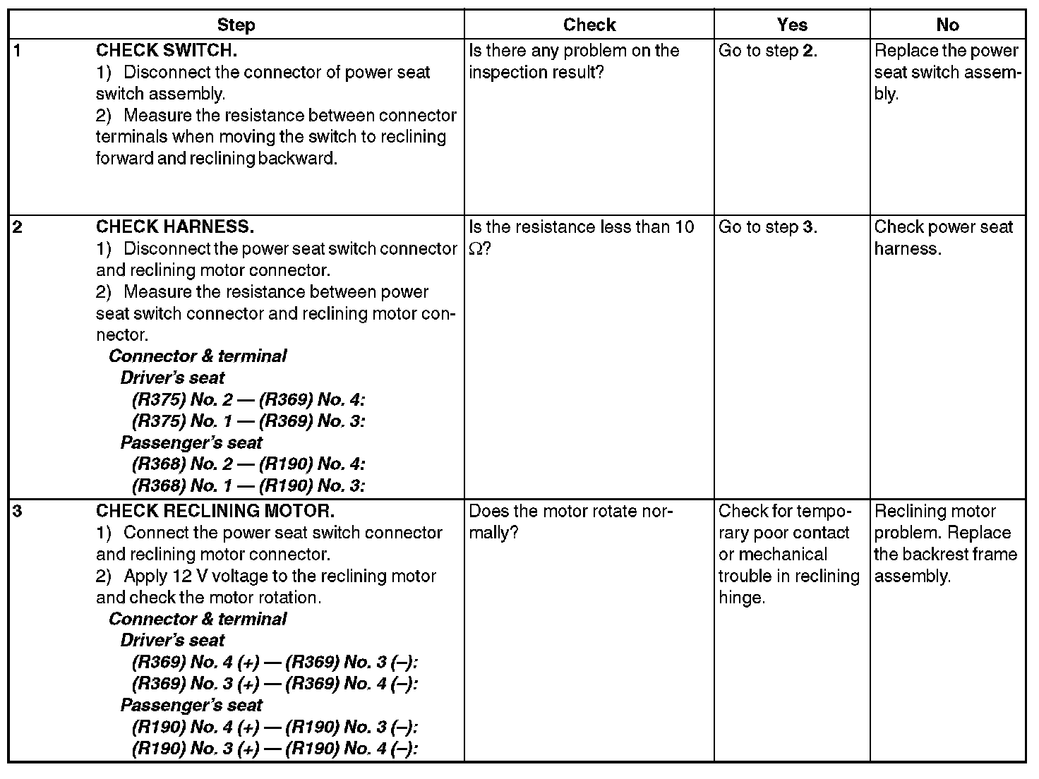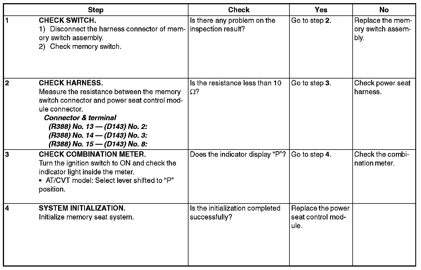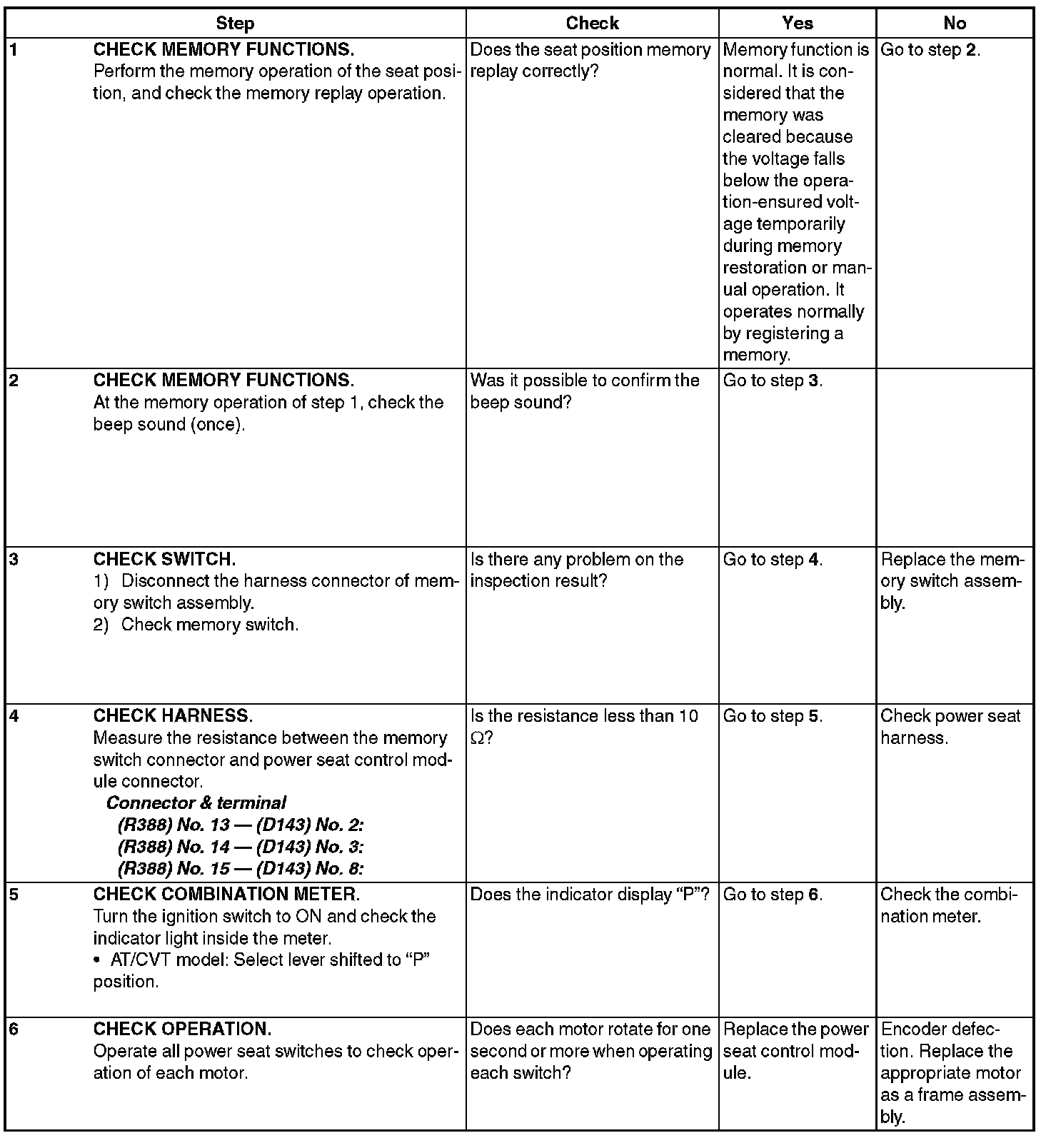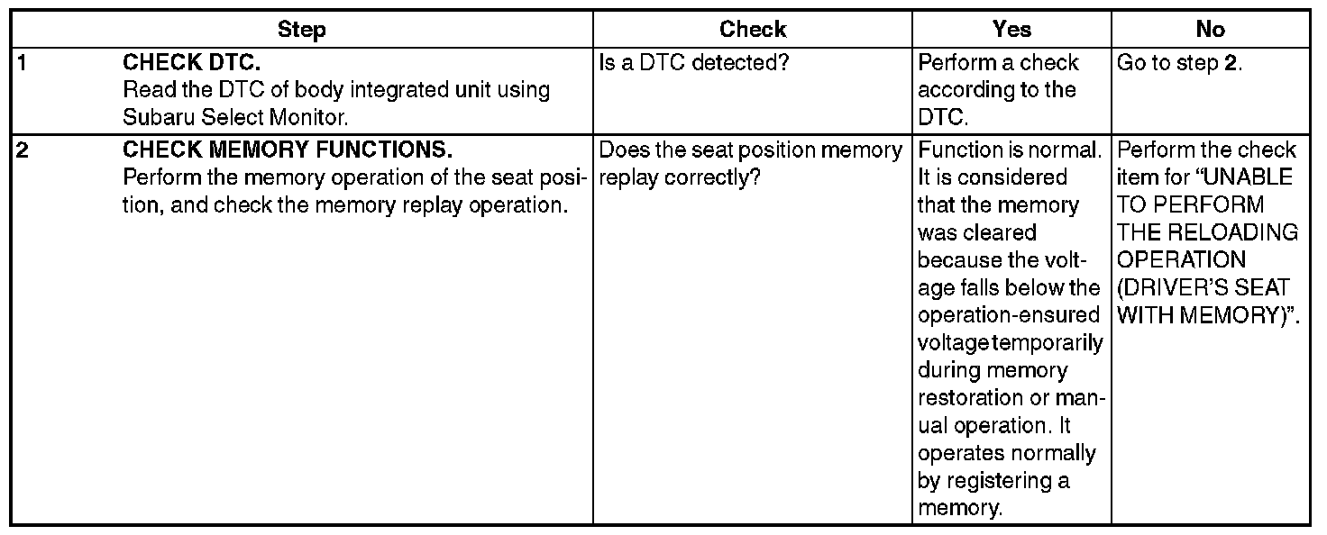 12. UNABLE TO PERFORM THE RELOADING OPERATION (DRIVER'S SEAT WITH MEMORY)