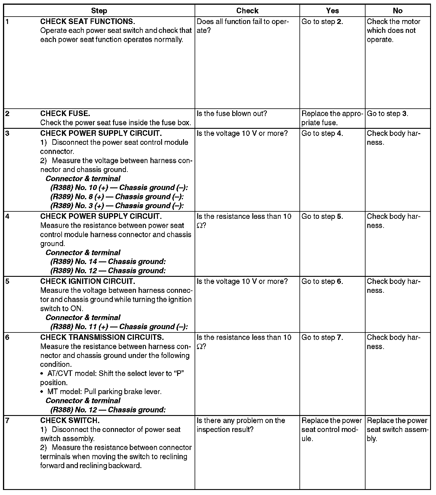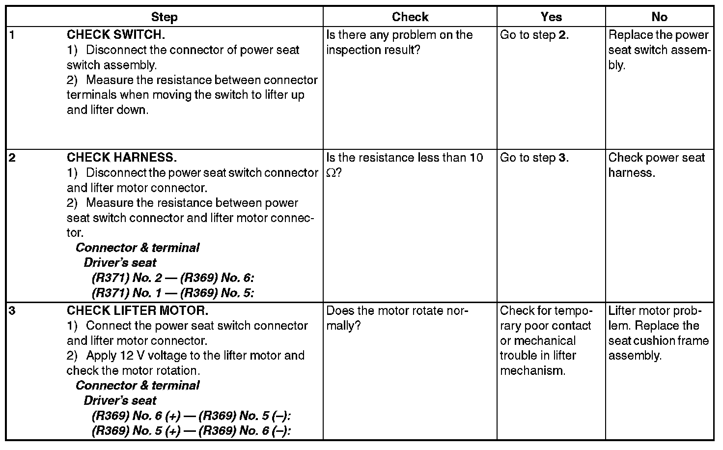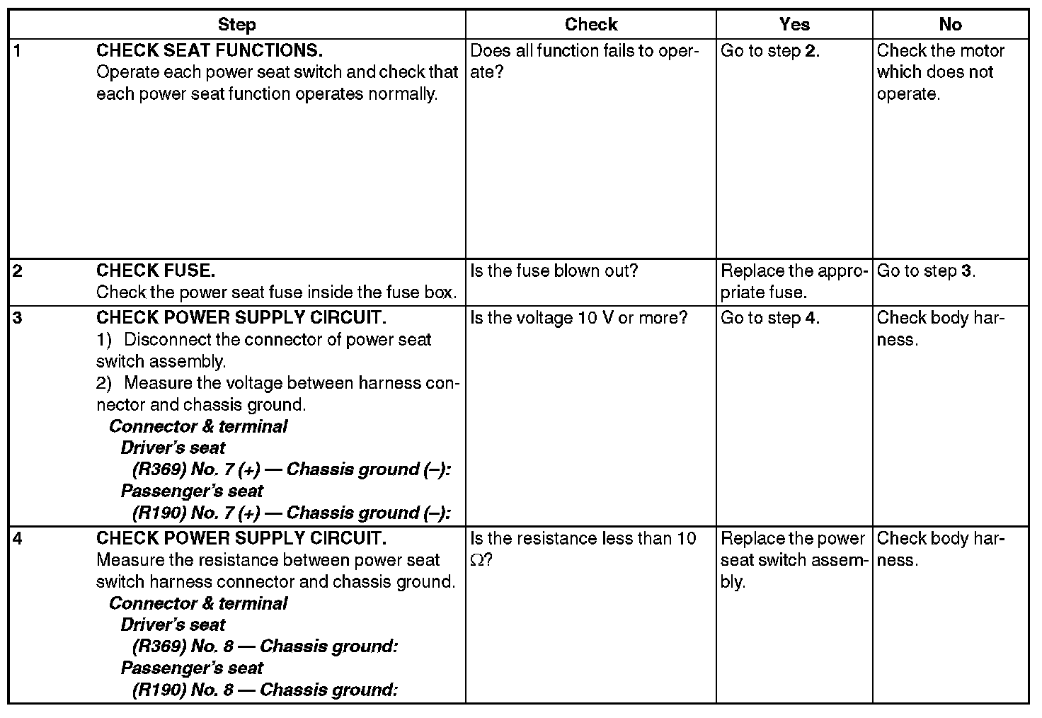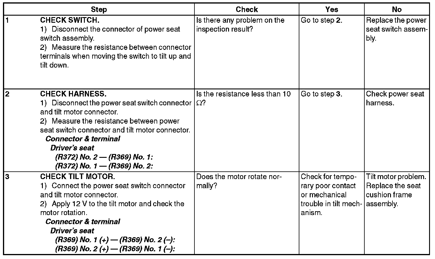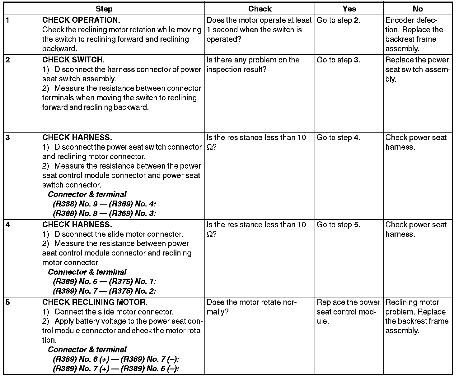 12. UNABLE TO PERFORM THE RELOADING OPERATION (DRIVER'S SEAT WITH MEMORY)