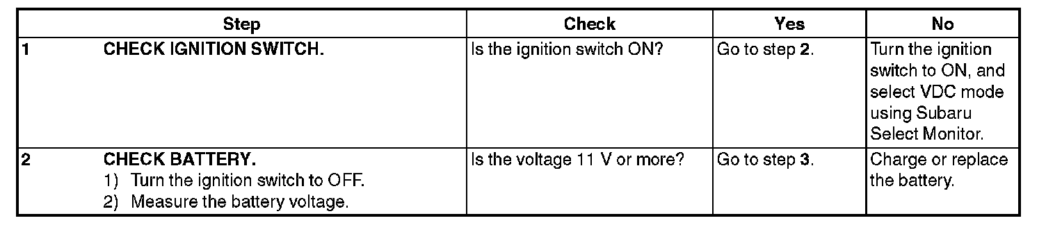 ^ If VDC and Subaru Select Monitor cannot communicate, check the communication circuit.