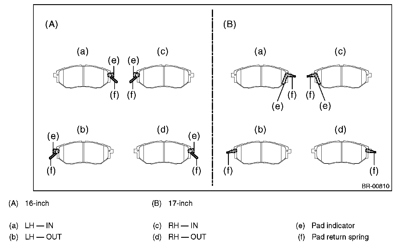 ^ If the pad return spring is deformed or damaged, replace the brake pad.