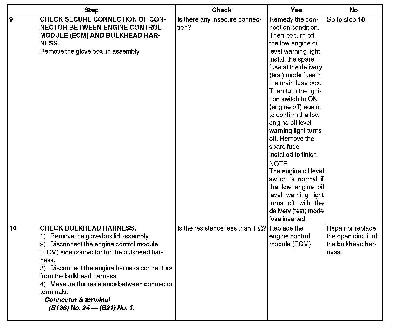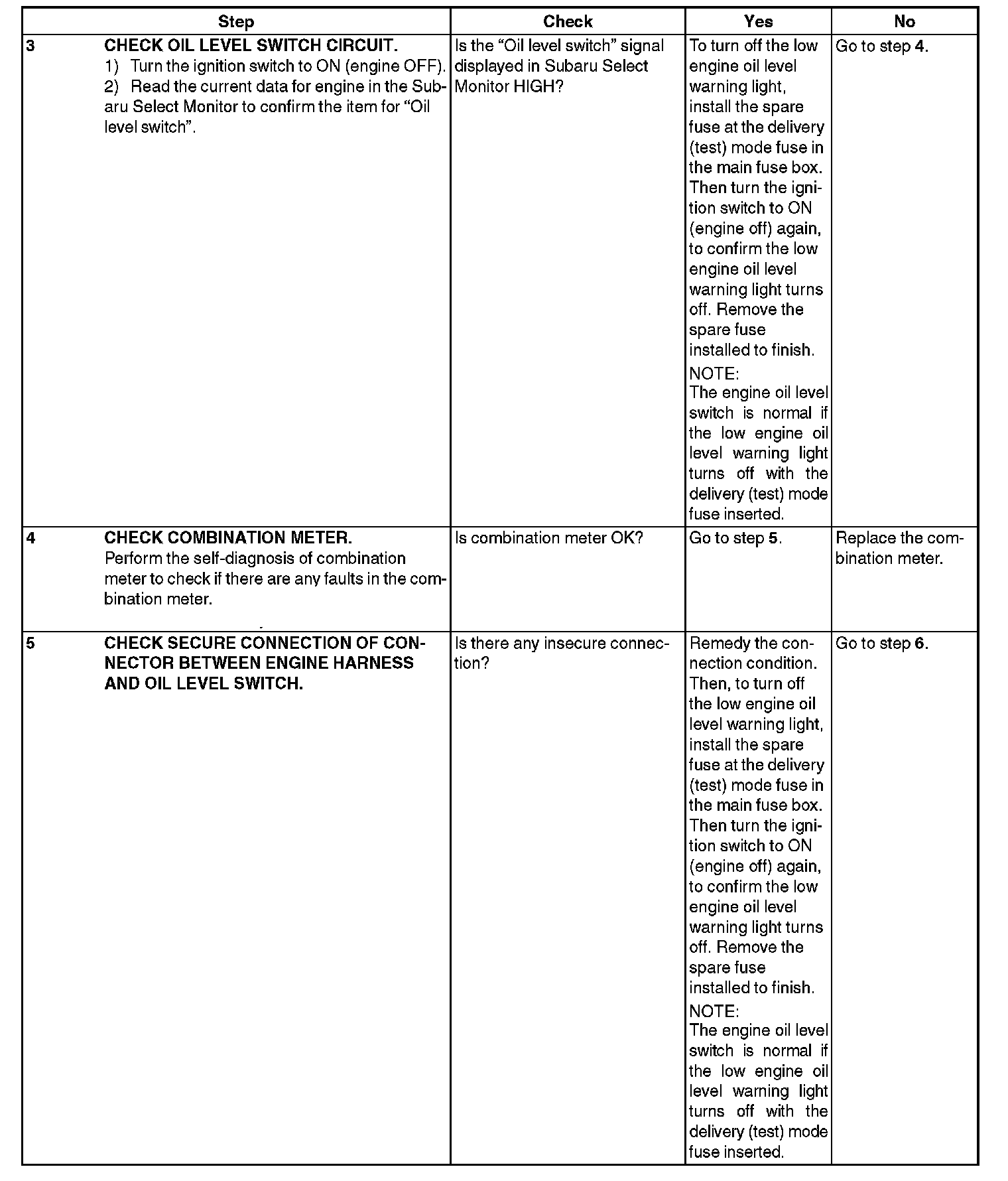 INSPECTION WHILE LOW ENGINE OIL LEVEL WARNING LIGHT IS ON