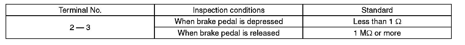 3) Replace the stop light switch if the inspection result is not within the standard value.