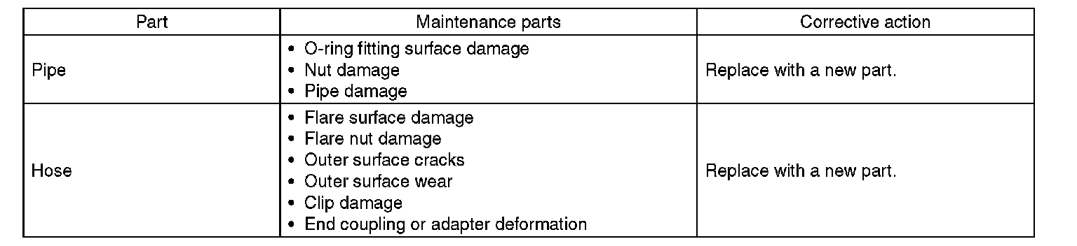 Although the surface layer materials of rubber hoses have excellent weathering resistance, heat resistance and resistance for low temperature brittleness, they are likely to be damaged chemically by brake fluid, battery electrolyte, engine oil and automatic transmission fluid and their service lives are to be very shortened. Wipe off hoses immediately if any of these come into contact with the hoses.
