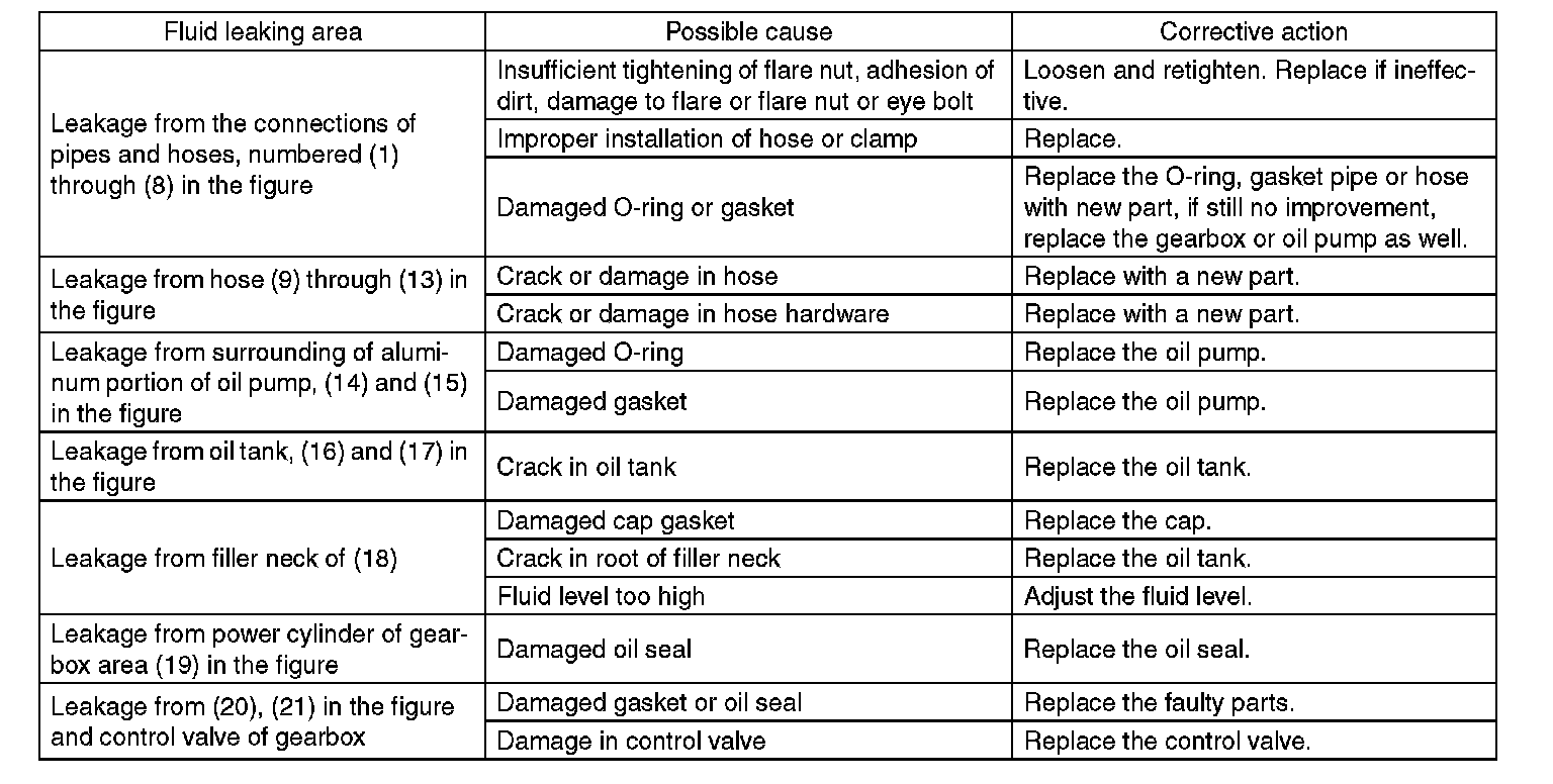 There are conditions in which a fluid leak is diagnosed, but is not actually leaking. This is because the fluid spilt during the last maintenance was not completely wiped off. Be sure to wipe off spilt fluid thoroughly after maintenance.