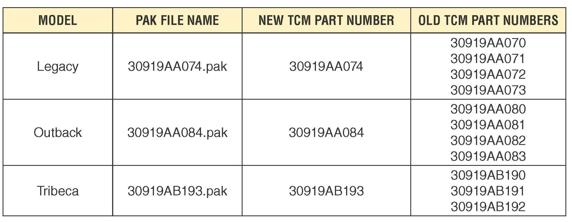 1. Reprogram the TCM using the applicable PAK file.