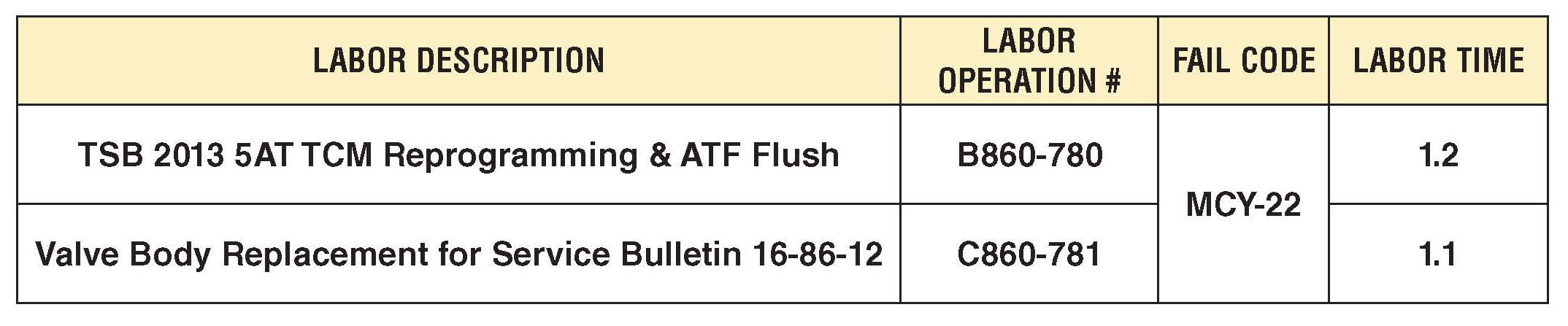 For vehicles under warranty, this repair can be claimed using the applicable coding shown.
