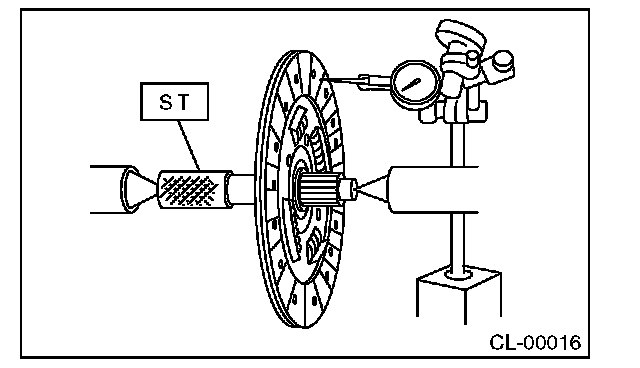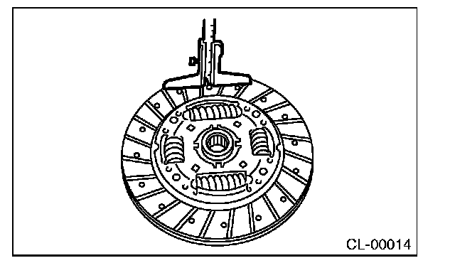 If deflection exceeds the specified value at the outer circumference of the facing, replace the clutch disc.