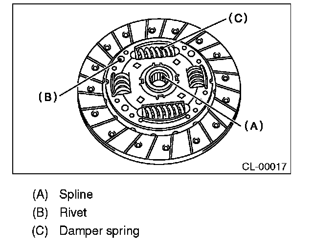 5) If there is spline wear, loose rivets, failed damper springs, etc., replace the clutch disc.