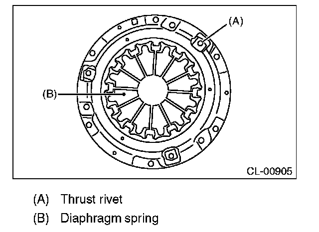 2) Damaged or worn bearing contact area at the center of diaphragm spring