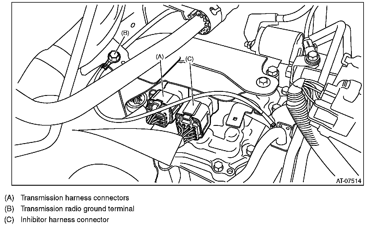 4) Install the adapter harness connector to the transmission hanger.
