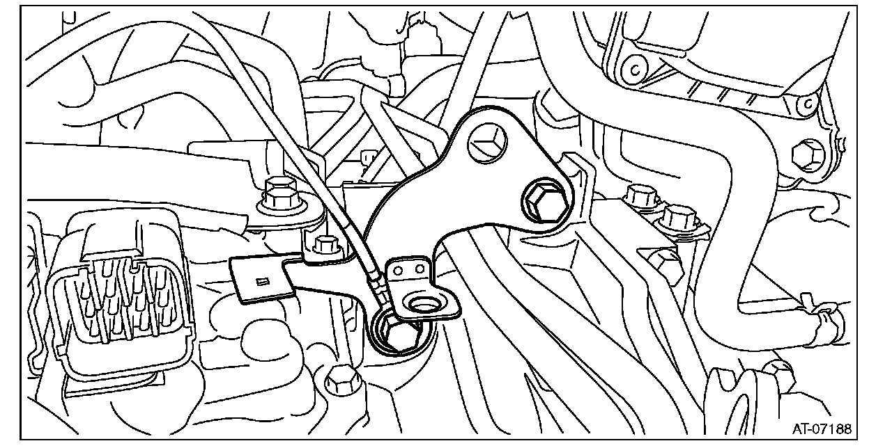 1) Temporarily install the CVTF cooler pipe COMPL, transmission hanger and transmission radio ground cord to the transmission.