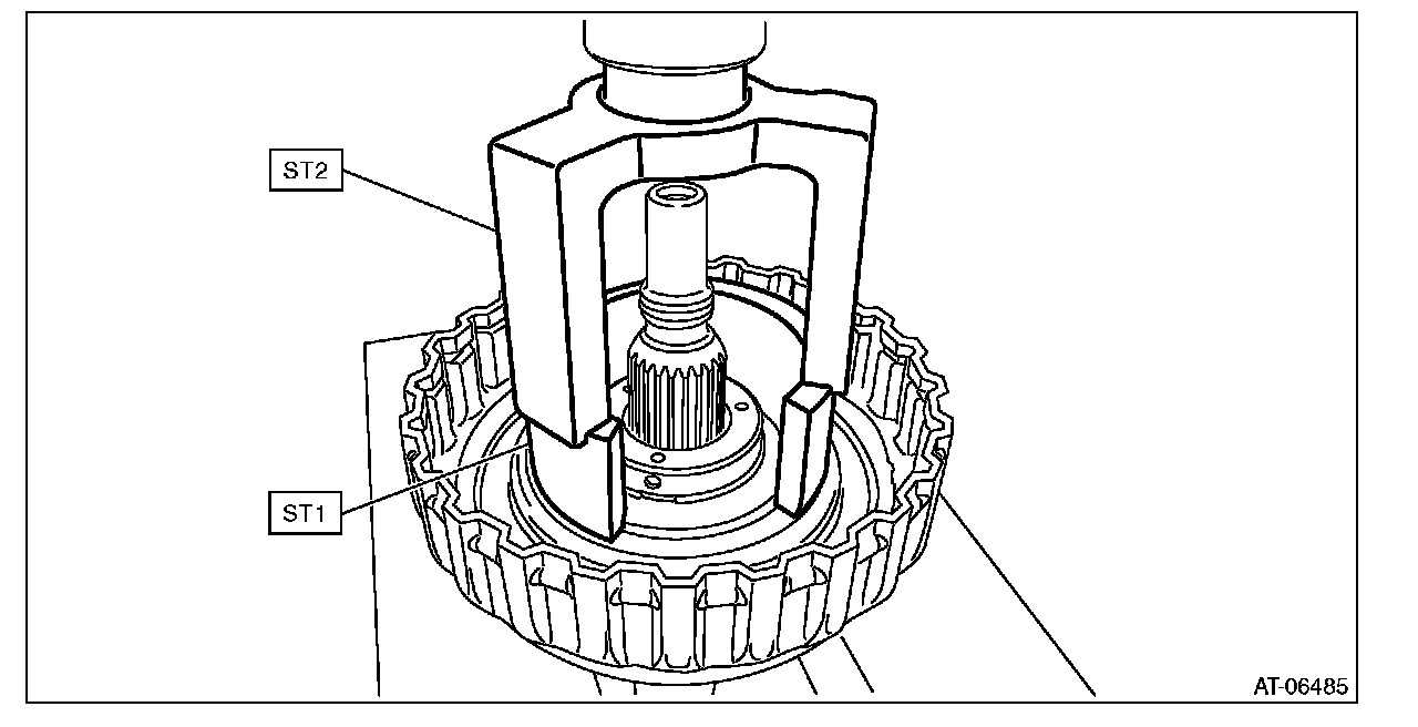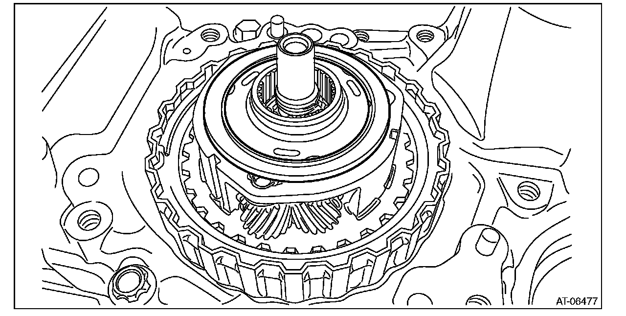 ^ Make sure the clearance between retaining plate and internal gear of forward clutch is within the limit. If it exceeds the standard, replace the forward clutch.