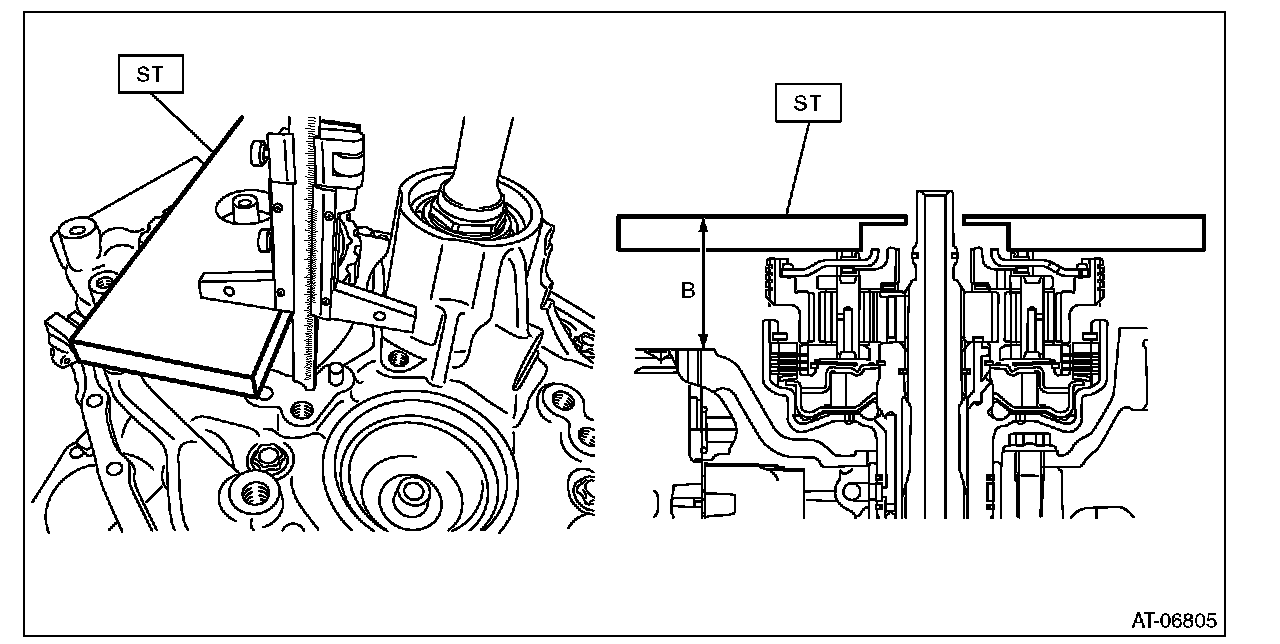 3) Measure the height "B" from the ST upper face to the mating surface of the drive pinion retainer.
