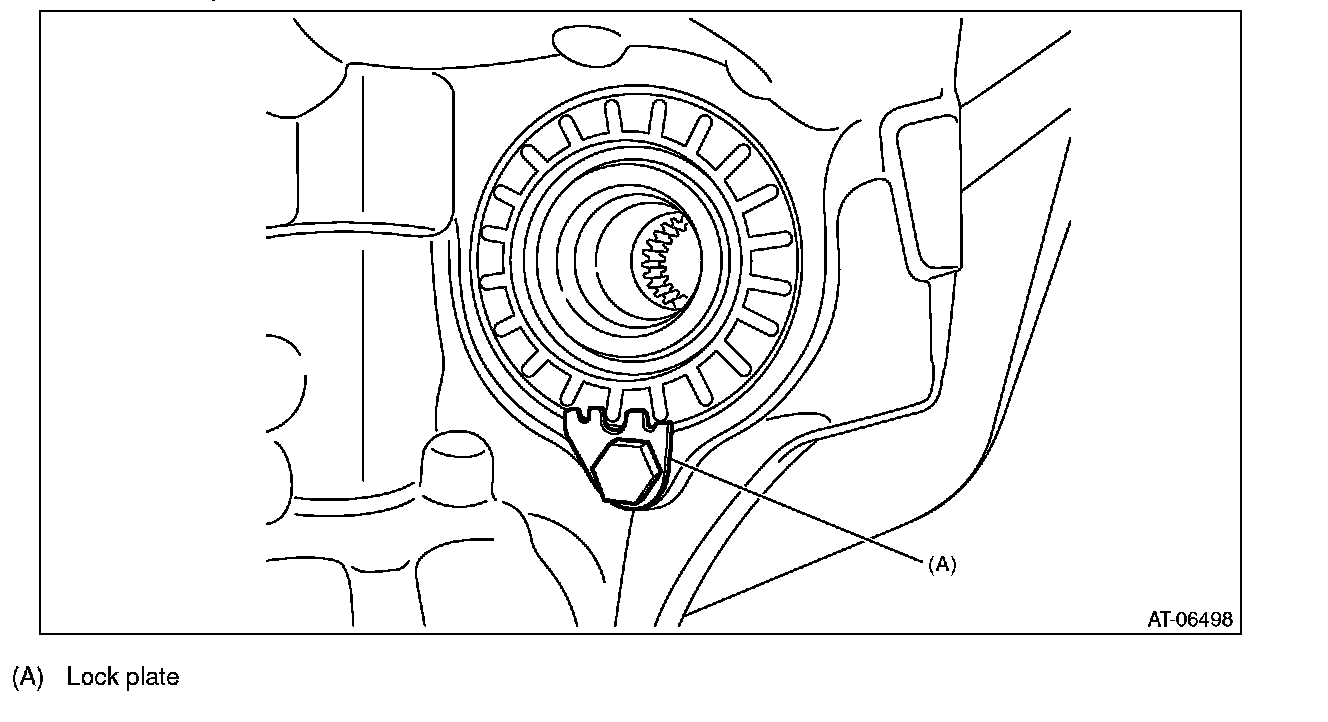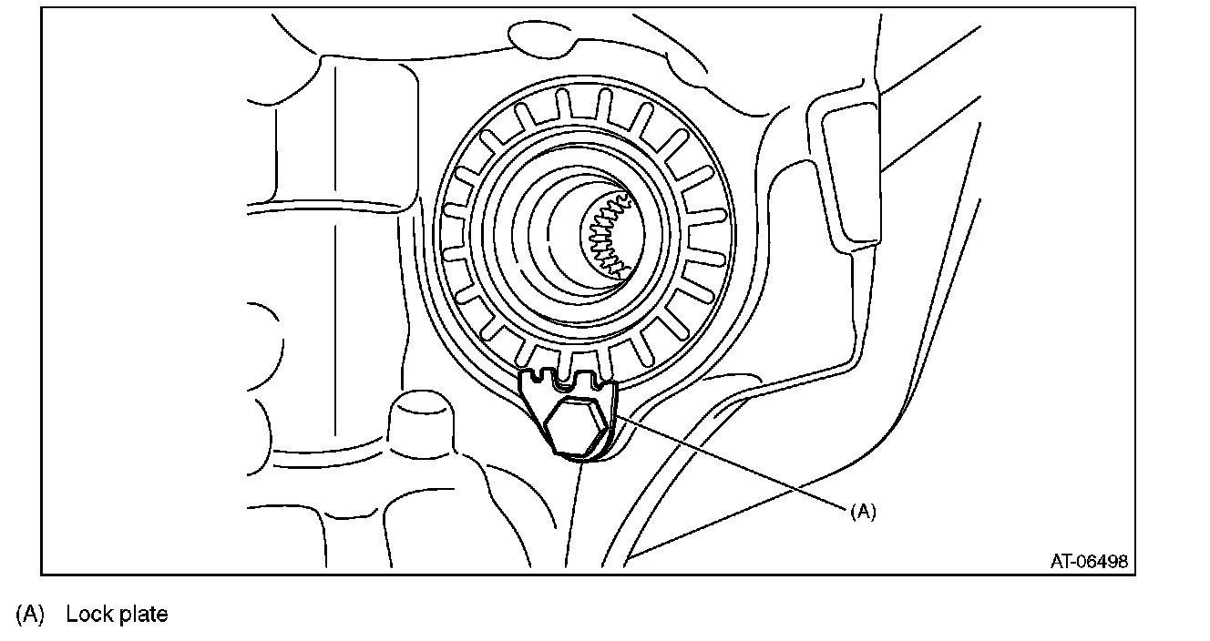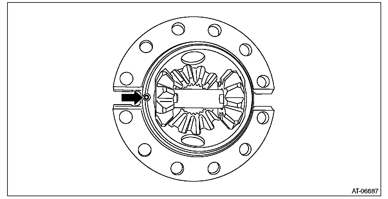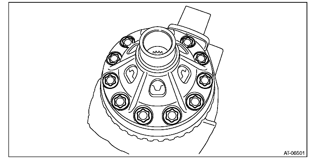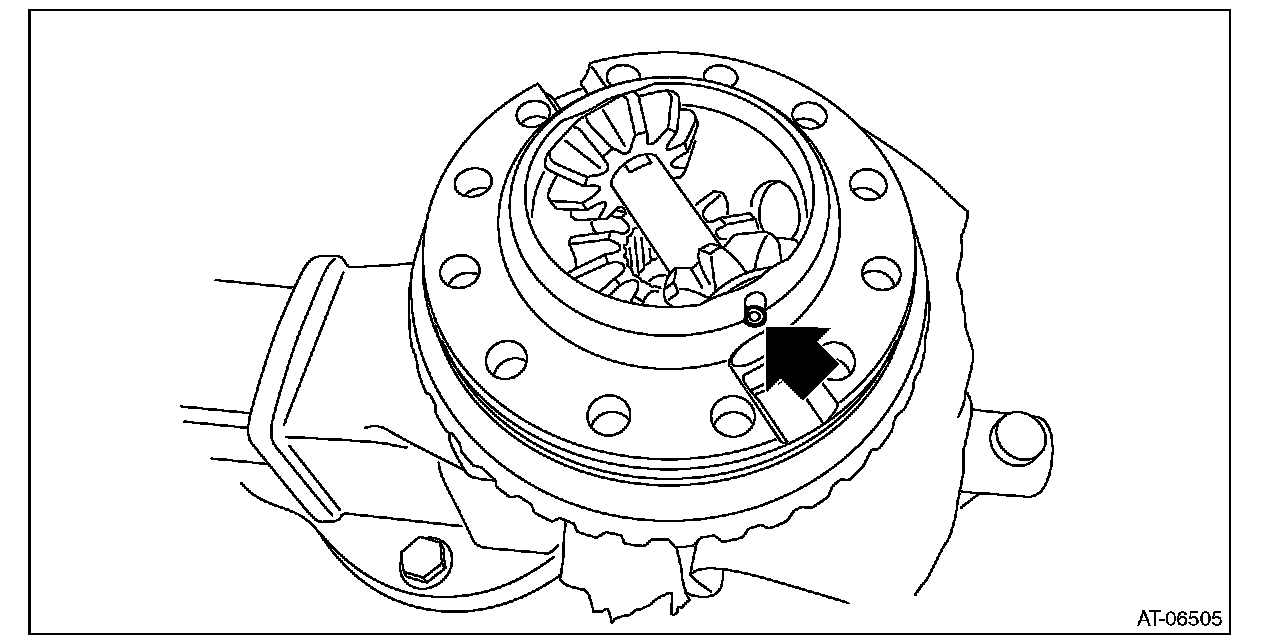 ^ Support the differential case assembly by hand to avoid damaging the retainer mounting hole of the converter case.