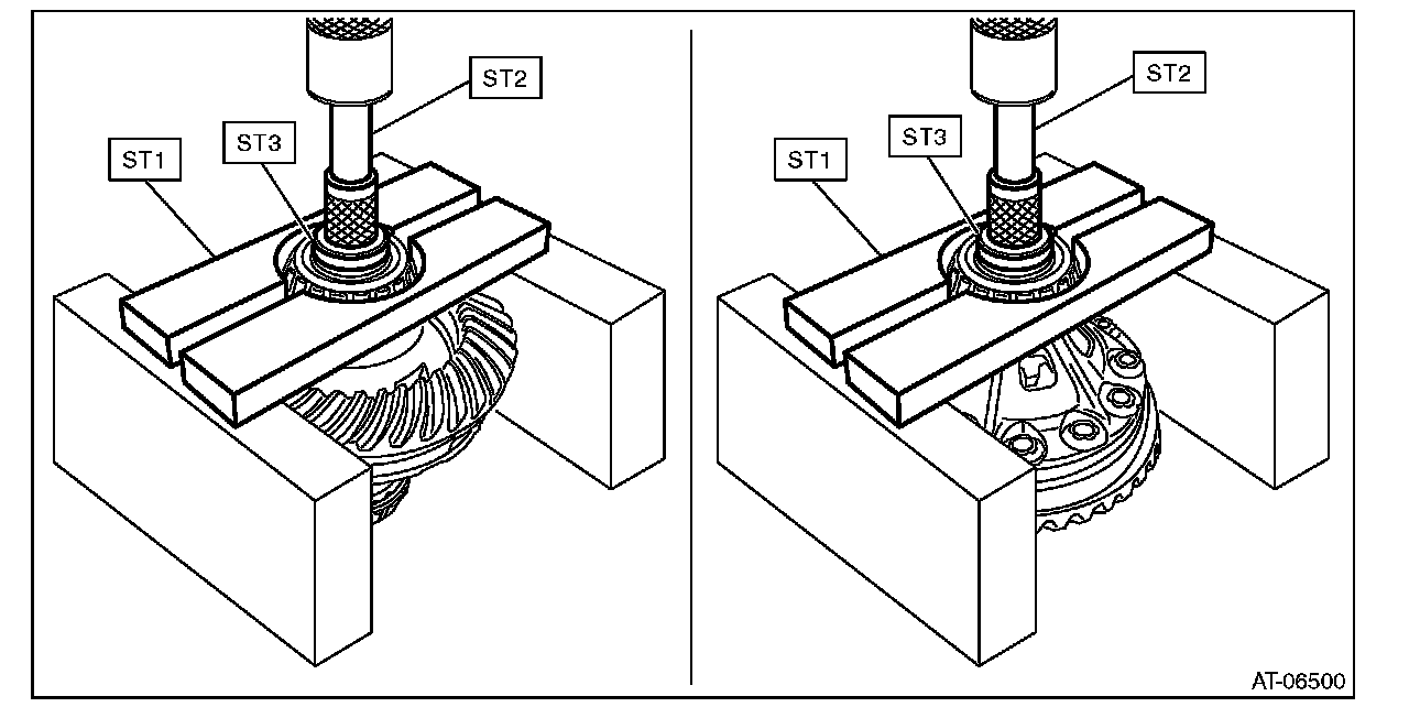 9) Using the ST, install the left and right taper roller bearings.