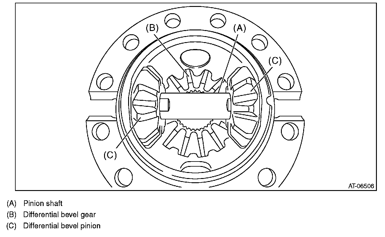 6) Remove the pinion shaft, then remove the differential bevel gear, washer and differential bevel pinion.