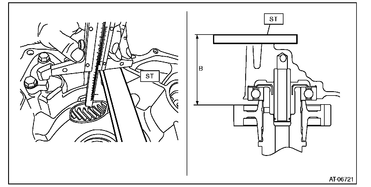 4) Measure depth "B" from the ST upper face to the reduction drive gear end face.