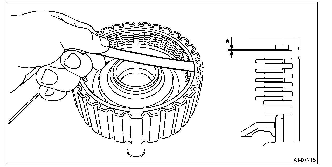 1) Before measuring clearance "A" between snap ring and driven plate, place same thickness shims on both sides to prevent the plate from tilting.