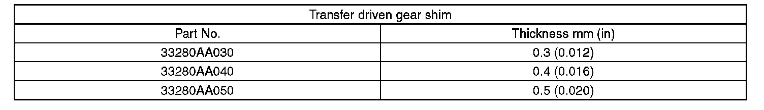 3) Select the transfer driven gear shim.