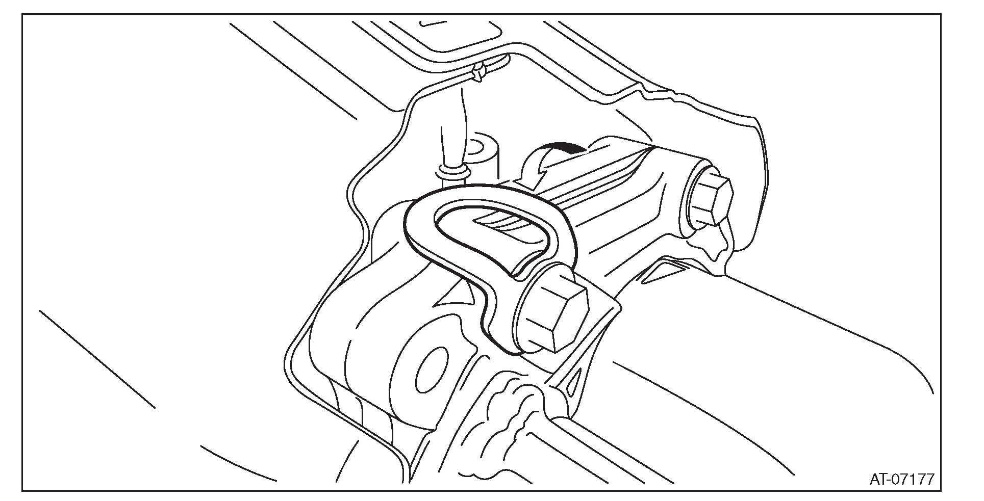 5) Strike and bend the transmission hanger of transmission rear with a soft rubber hammer etc. so that it gets in contact with the transmission case.