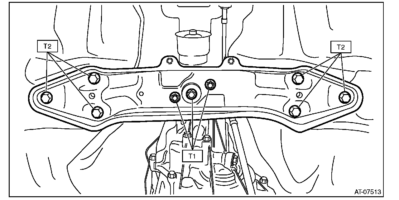8) Secure the transmission rear crossmember to the vehicle body.