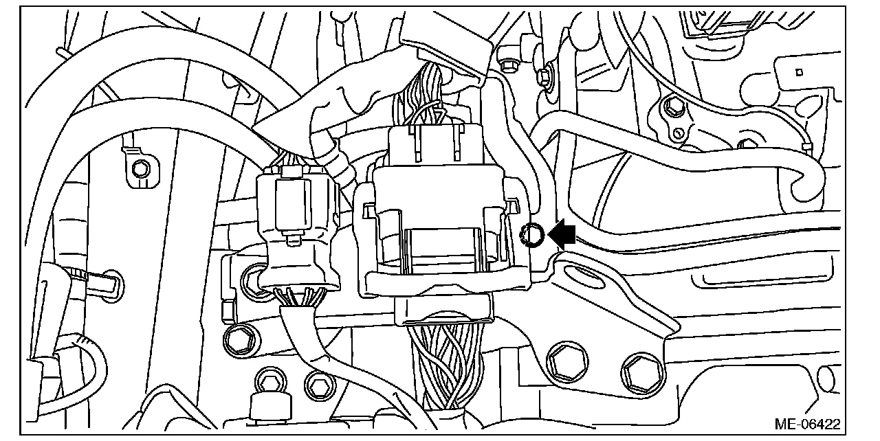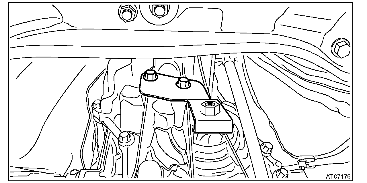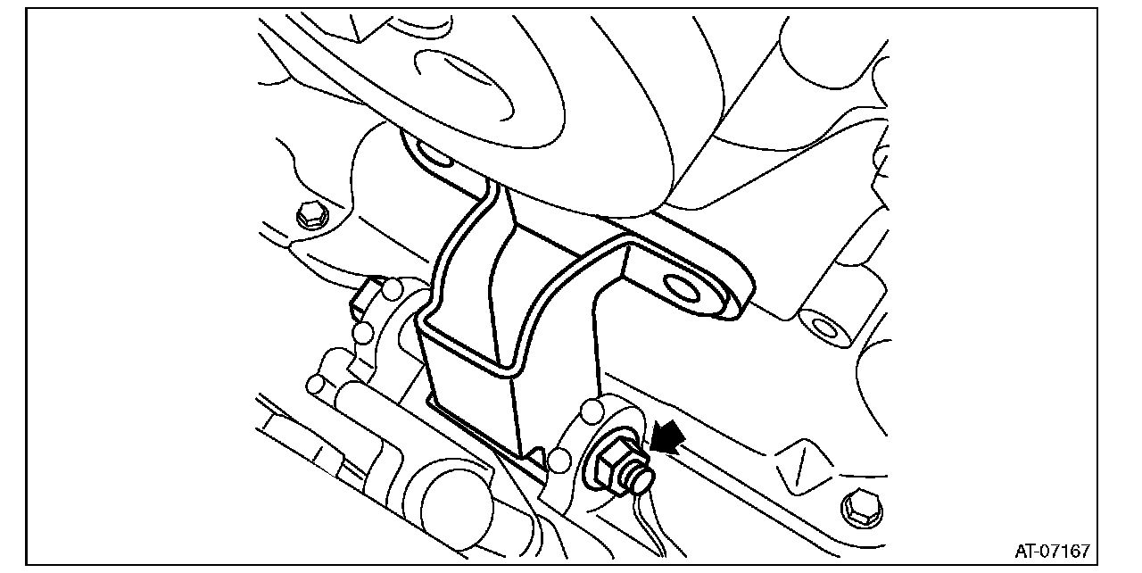 22) Install the nut to the transmission mounting bracket.