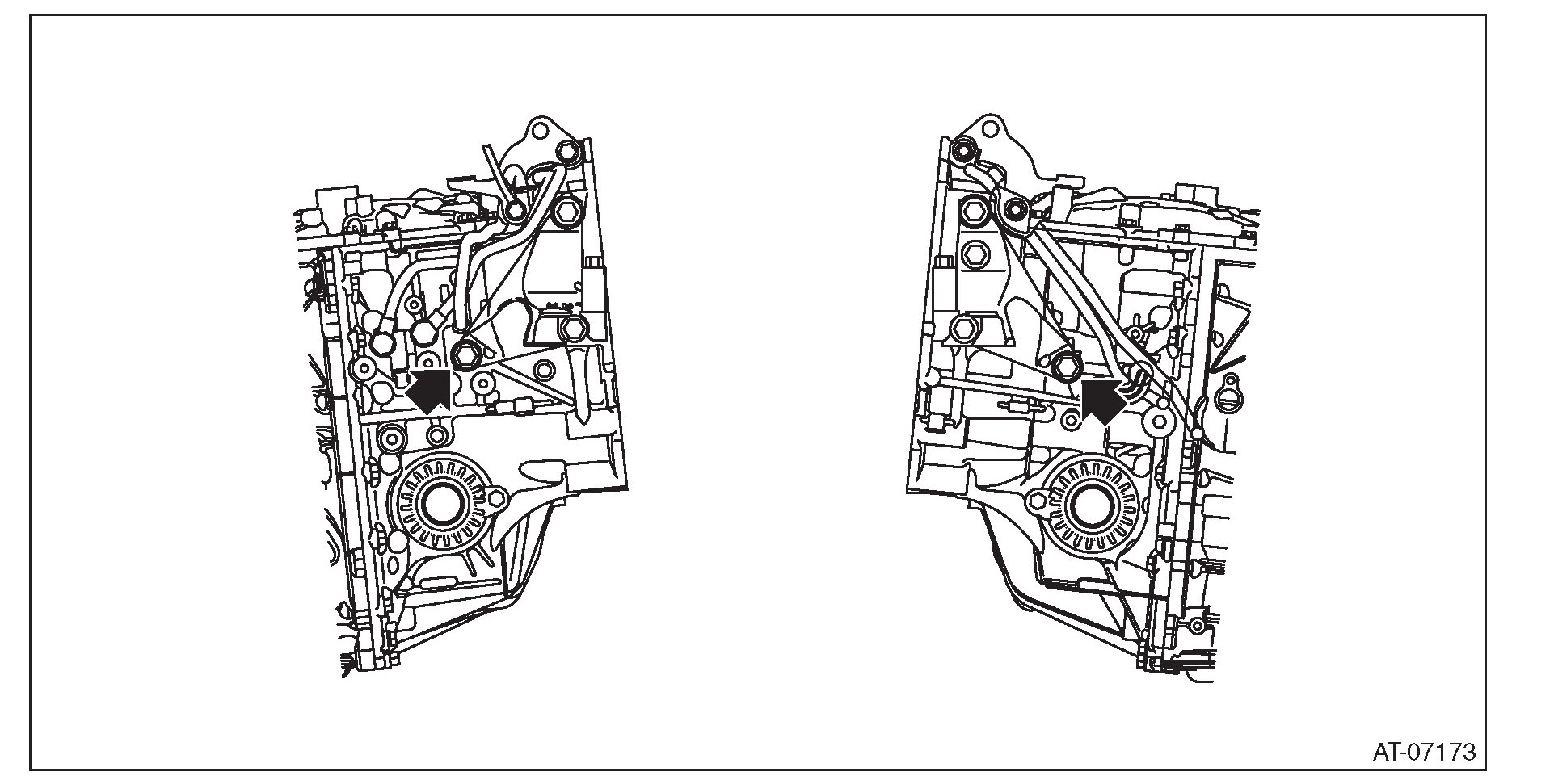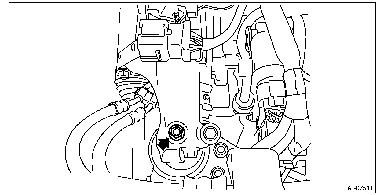 ^ Do not drop the mounting bolt in the converter housing.
